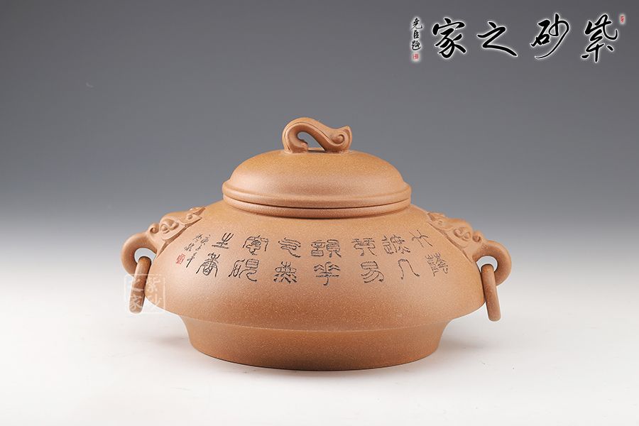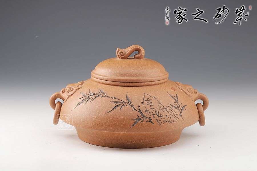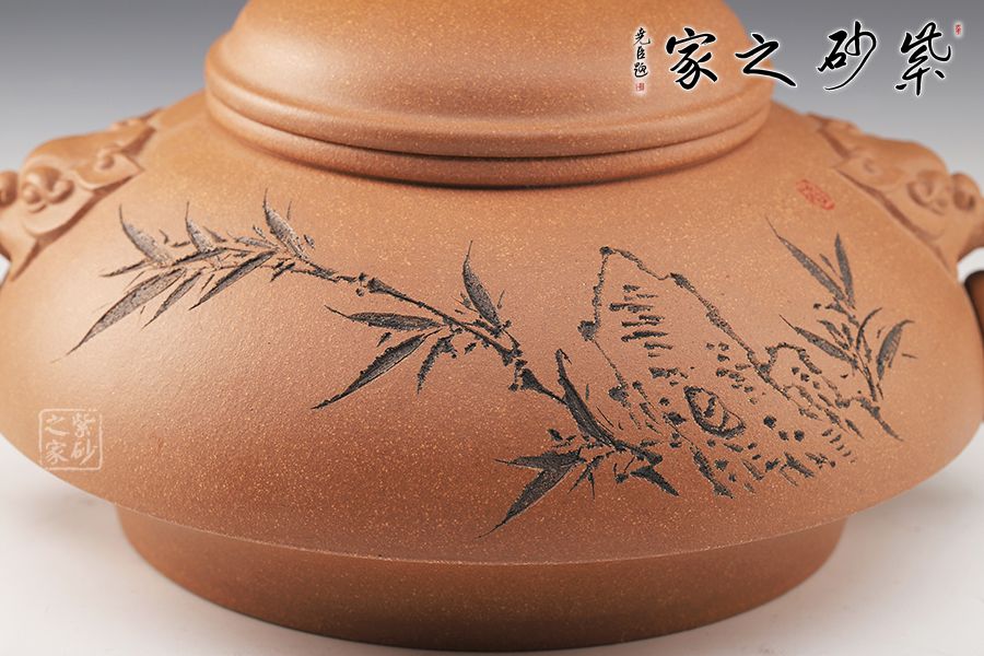 泥性:感甜嫩綿密,質(zhì)堅而溫潤,呈近田黃色調(diào),為江蘇宜興趙莊山系朱泥礦~黃石黃之共生礦,經(jīng)挑揀練製而成,因含鐵量只達6%左右,致陶之后呈“金田黃色”。