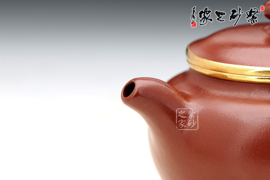 丁小明老師的掇只則顯得較為扁平,線條也同樣簡(jiǎn)單質(zhì)樸,壺口和蓋的邊緣采用包金手法裝飾,尊貴而華美,且氣密性也非常的好,一舉兩得。