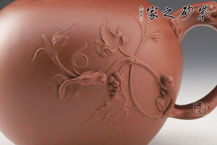 此壺名為“松鼠葡萄”,是何道洪老師的得意之作。