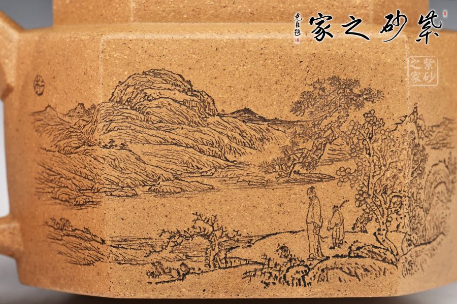 壺身是老師最具代表性的山水詩詞的裝飾刻繪,意境十足,韻味頗豐!