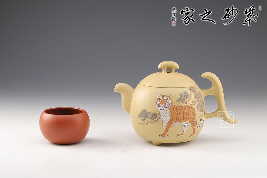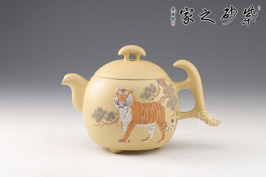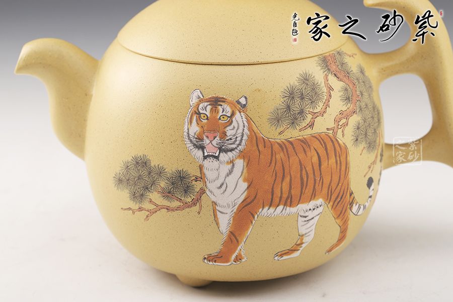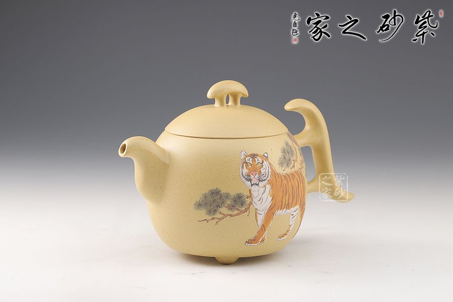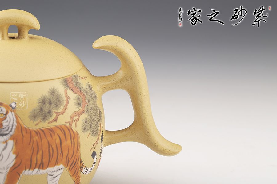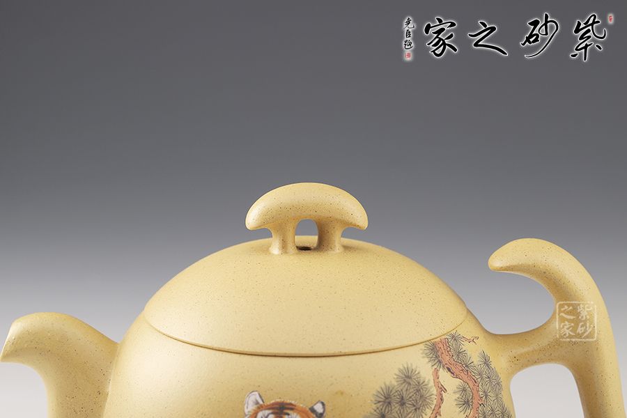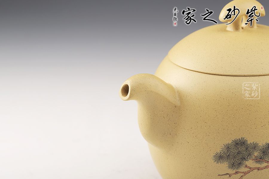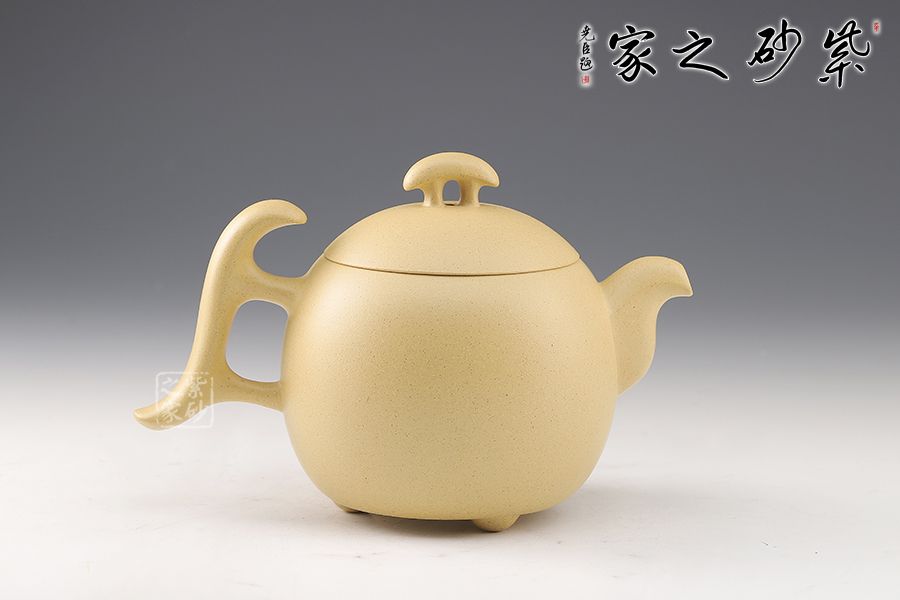 整壺飽滿圓潤,三足橋鈕,壺把頗具設(shè)計感,比例均衡,非常有新意,推薦。