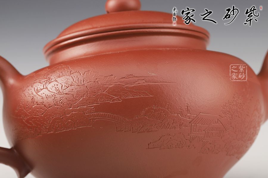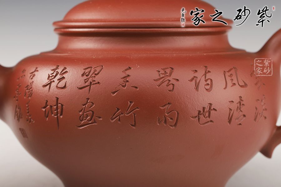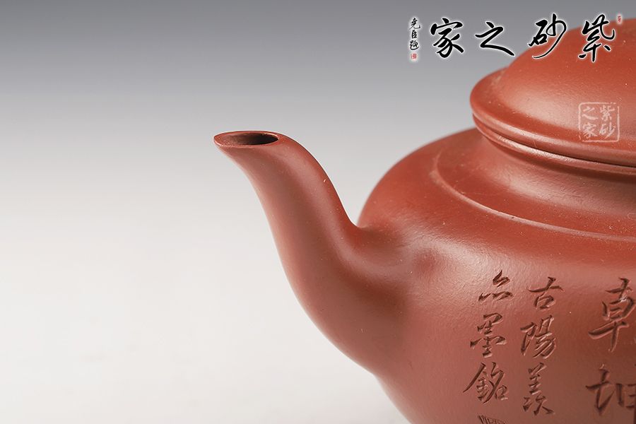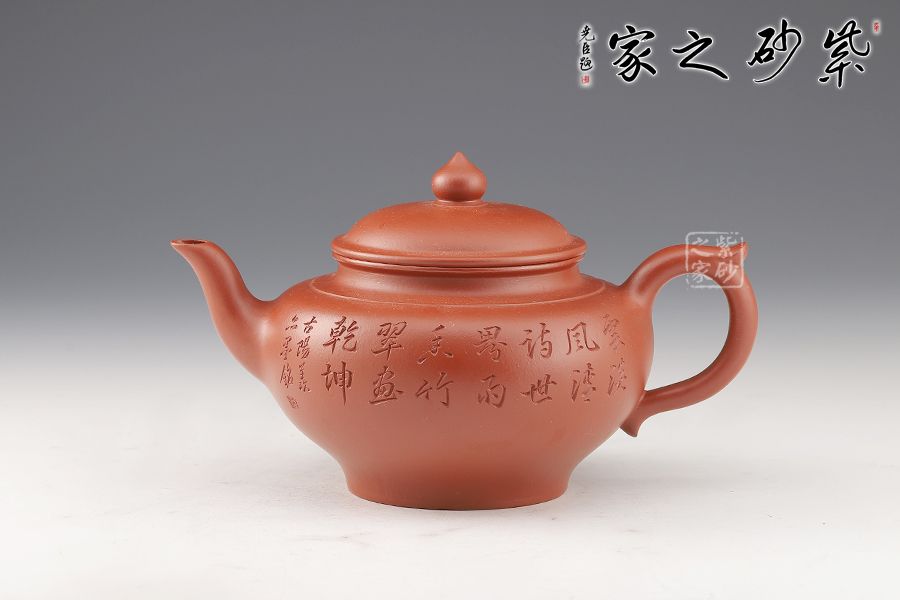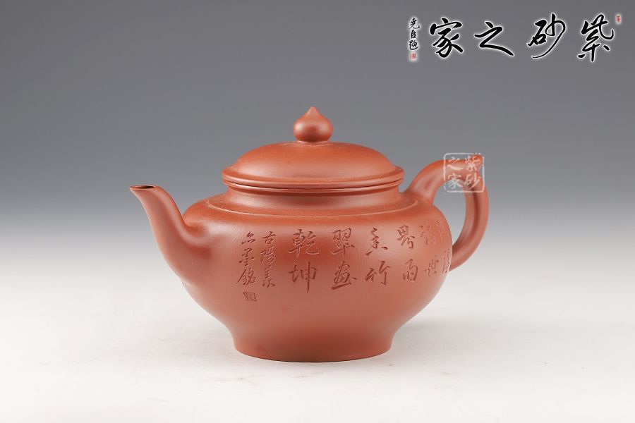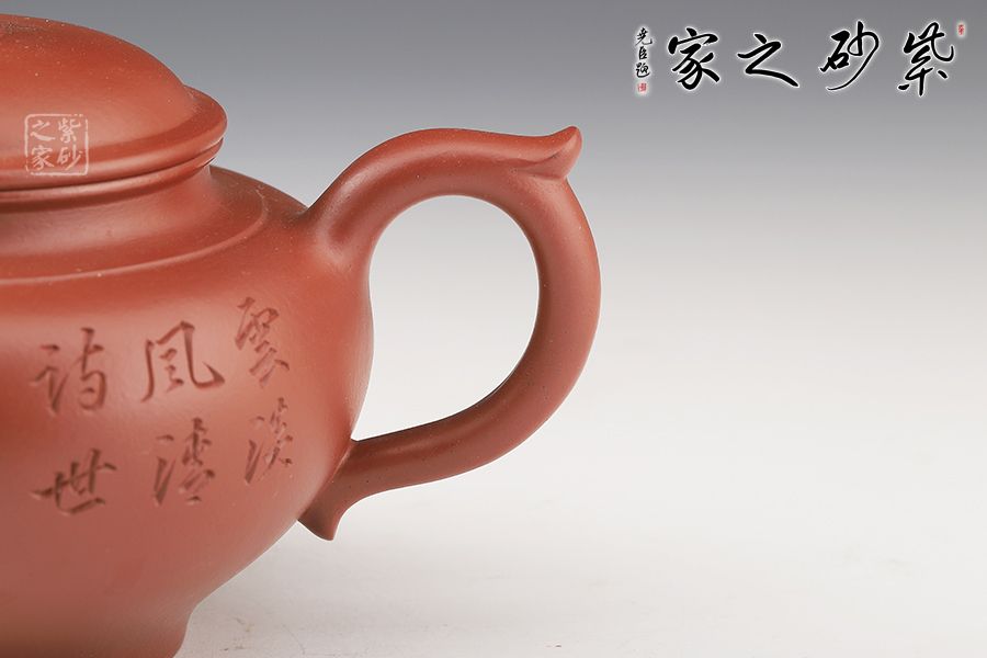 特點:質(zhì)感綿密、緊實細(xì)緻,持之扎實沉重、紅潤豔麗,泥中極品,無以倫比;泥胚含少許原礦顆粒,沖淋熱水后色變極大,呈紅中帶紫,養(yǎng)壺易現(xiàn)“包漿”之美。
