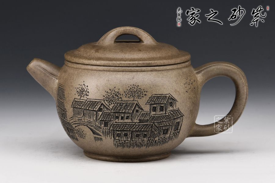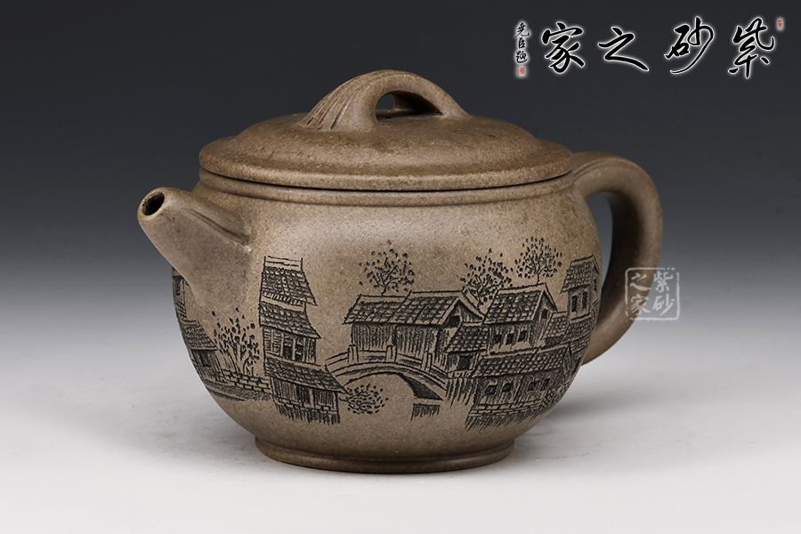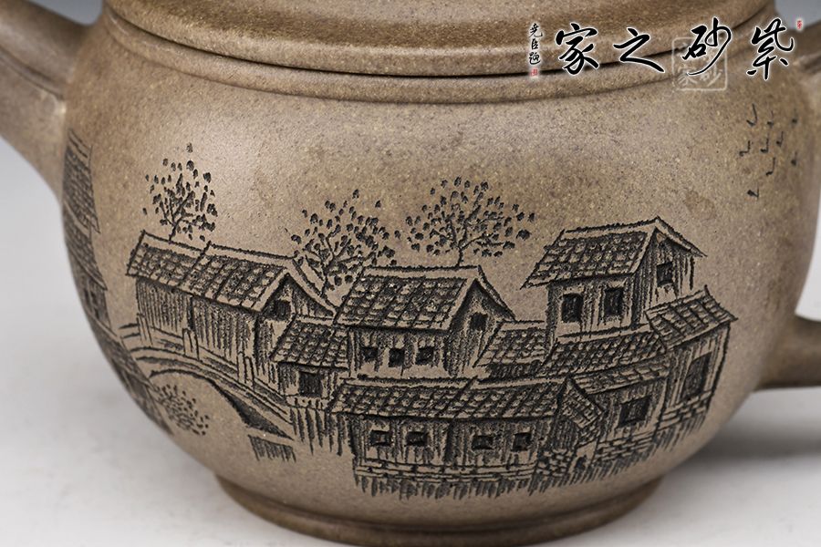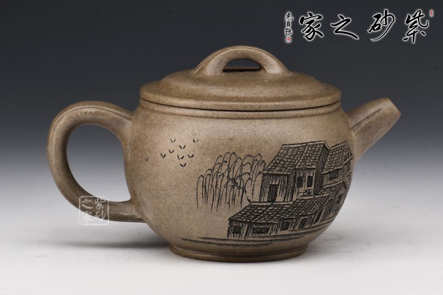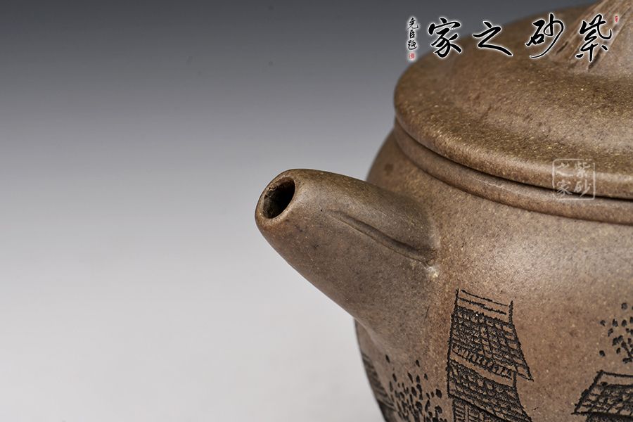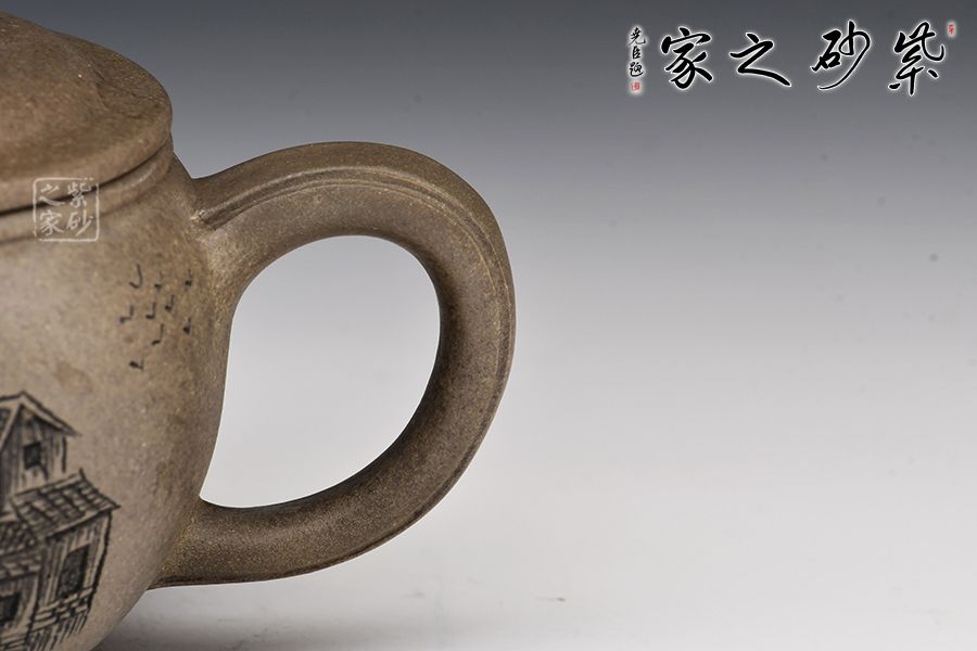 漢瓦壺由精選龍背青,全手工精制而成,泥色古樸,更顯老味。整器以簡潔的線條勾勒出淳樸凝重的形體,深厚且具神韻。壺身呈矮圓柱形,渾厚沉穩(wěn),大口蓋壓口平整有力,投茶爽利。橋鈕、直嘴流、耳把剛?cè)岵?jì),比例和諧,相得益彰。陶刻裝點(diǎn),好料精工,賞用皆宜。