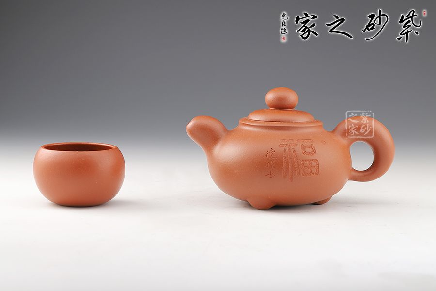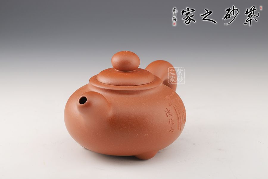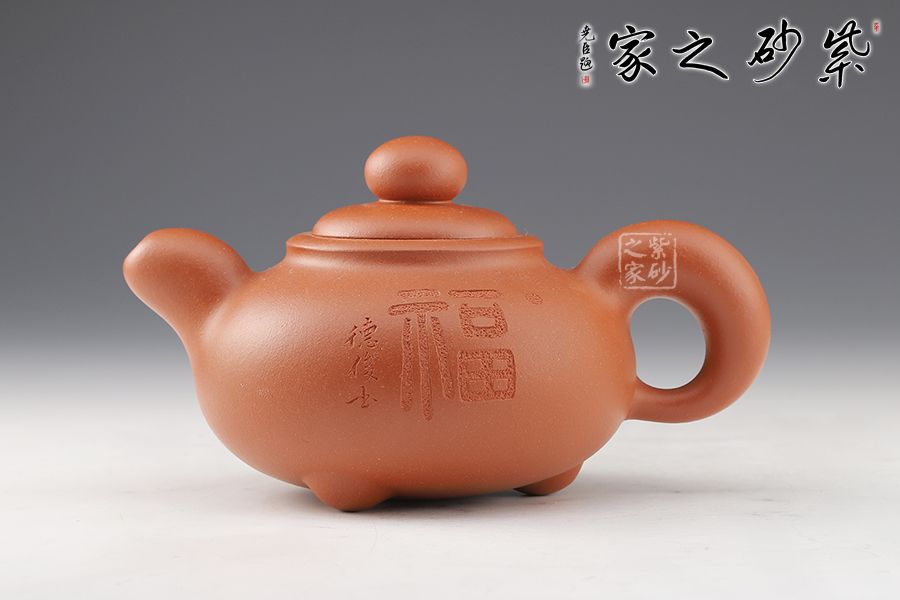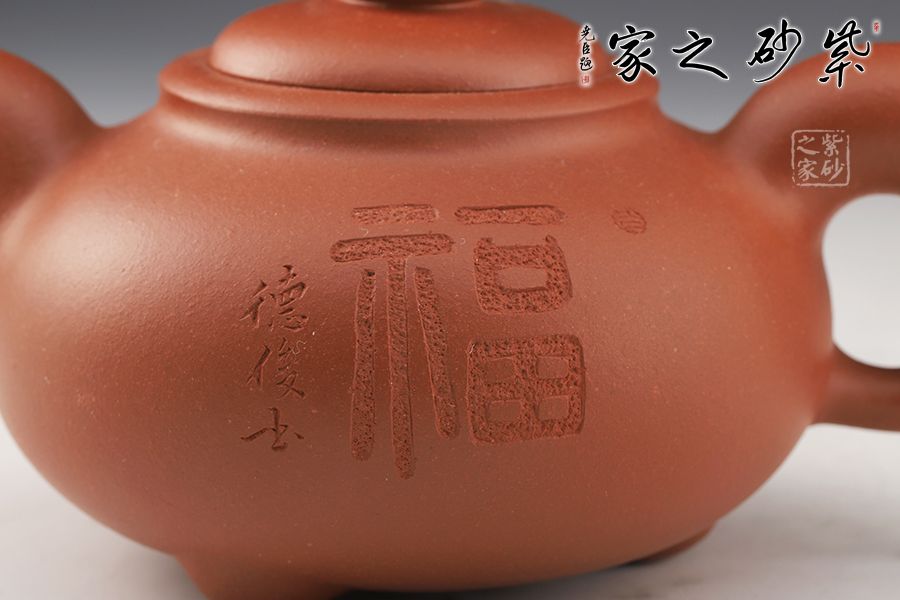壺身陶刻裝飾,正陶刻“福”字,五福到,福運(yùn)到。整器比例協(xié)調(diào),線條流暢,加之氣韻敦厚古樸,實(shí)用佳器,值得品賞把玩!
