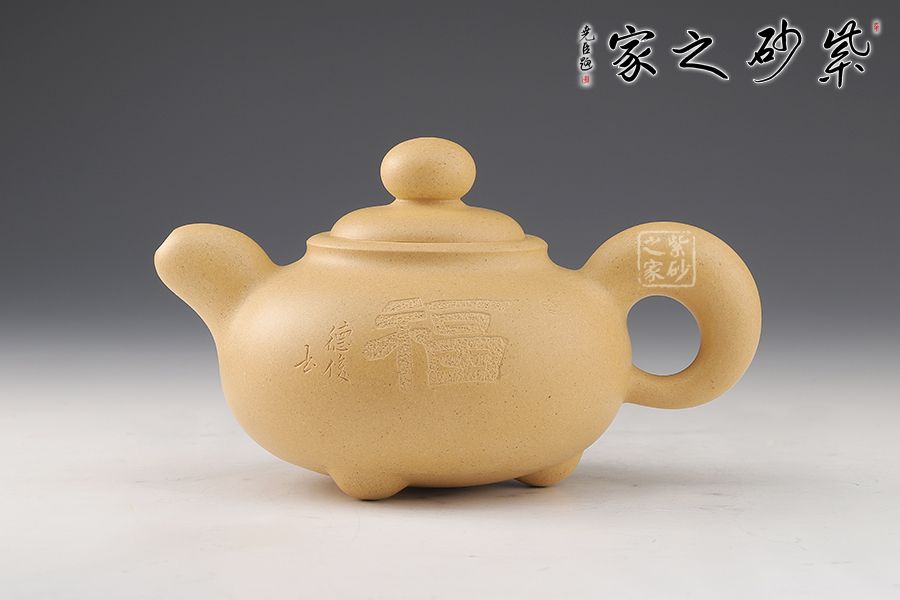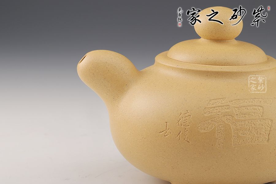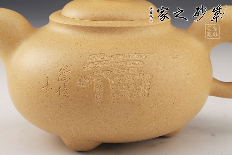 壺身陶刻裝飾,正陶刻“福”字,五福到,福運到。整器比例協(xié)調(diào),線條流暢,加之氣韻敦厚古樸,實用佳器,值得品賞把玩!