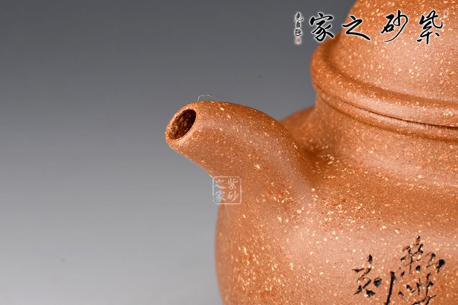 泥性:原礦因含緞泥、紅泥、紫泥等諸多共生礦,成陶之后,于深沉之“橙紅色”底上,滿佈五彩斑斕的粗細、深淺之紅、黃星斑點。