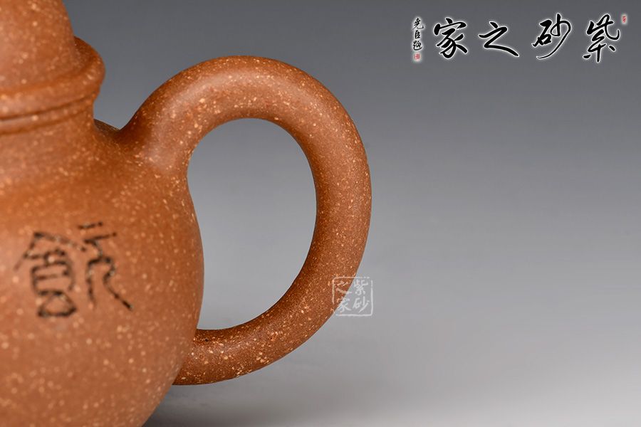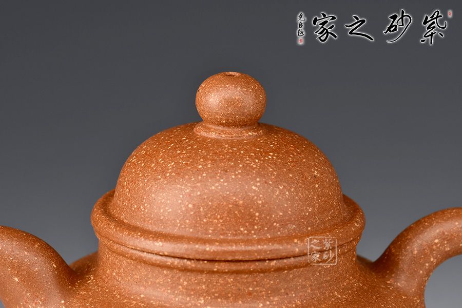 此壺為作者選用明朝土,全手工精制而成,砂感強烈,彰顯出濃厚的古樸氣息。整壺古樸大方,鈕、蓋、身猶如三個圓球疊落而成,壺頸較長,立體空間感極好,壺蓋的卷沿古樸厚重,壓蓋有氣勢。一彎流昂揚,耳形把精巧。整體比例勻稱,造型大氣,周正精美,渾樸豐潤,是一把高性價比的殺茶利器,值得把玩。