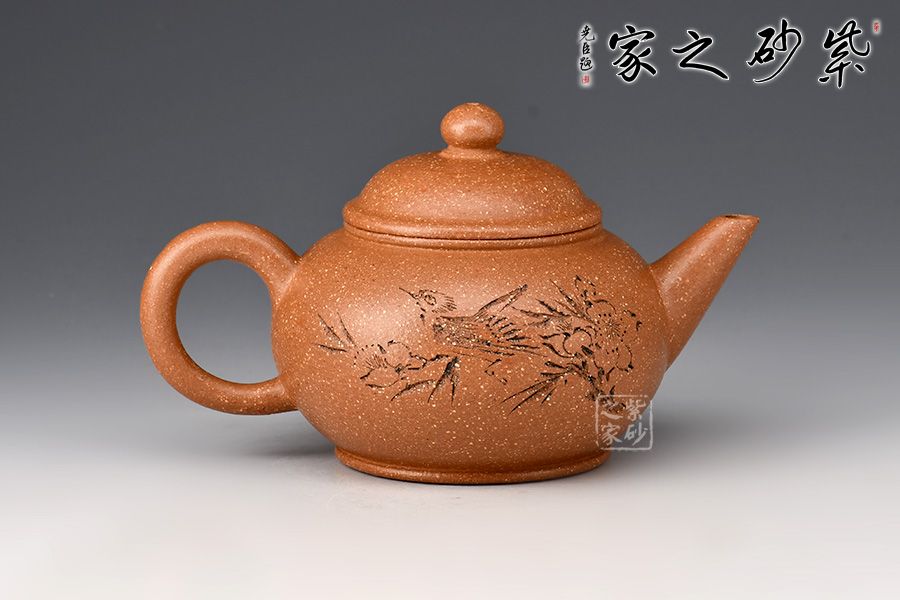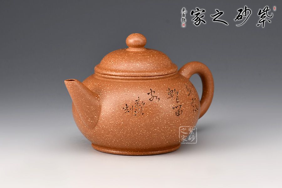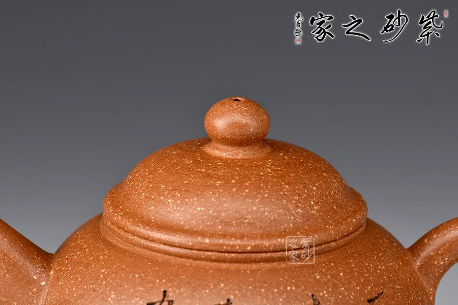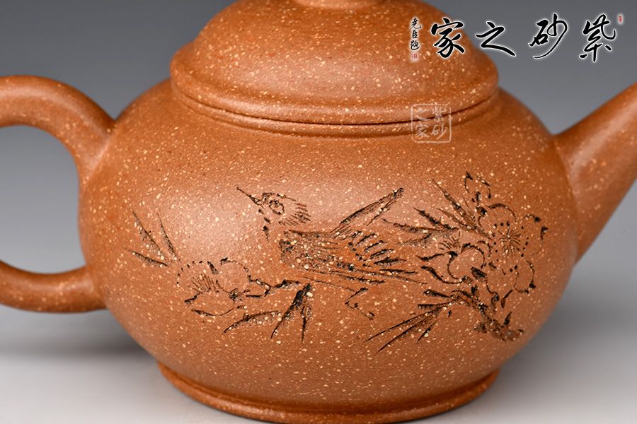 特點:原礦因含緞泥、紅泥、紫泥等諸多共生礦,陶之后,于深沉之“橙紅色”底上,滿佈五彩斑斕的粗細(xì)、深淺之紅、黃星斑點。