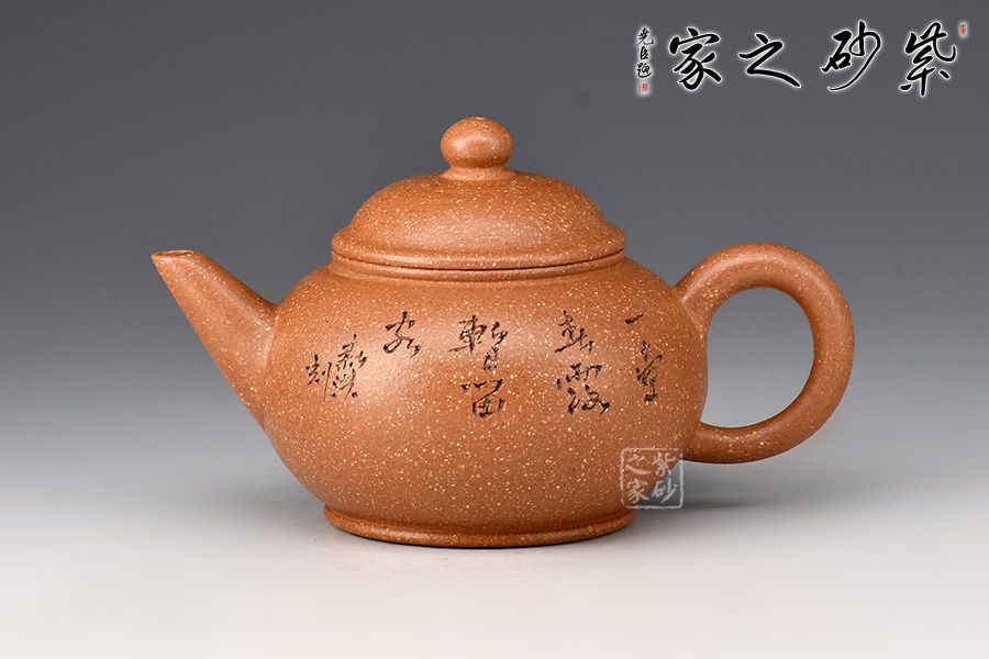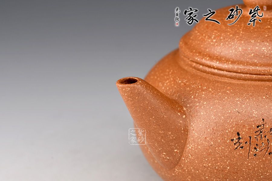 此壺選用明朝土精制而成,泥色溫潤典雅,造型經(jīng)典,雋永耐看。簡潔的線條,勾勒出整體淳樸清雅之氣。壺身豐潤飽滿,隆起的壓蓋之上,以一粒珠裝飾,與壺身之形相互呼應(yīng),氣韻貫通。直流嘴修長而挺拔,出水爽利,環(huán)形把儒雅纖細(xì),與壺嘴和諧對稱,增加整體的協(xié)調(diào)美。200cc小巧玲瓏,精致實用,值得把玩。
