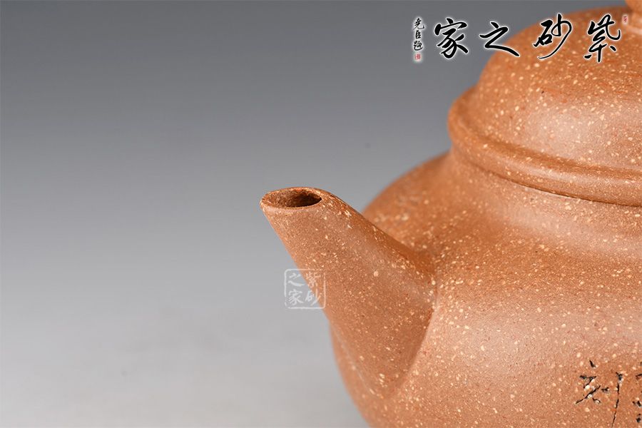 泥性:原礦因含緞泥、紅泥、紫泥等諸多共生礦,成陶之后,于深沉之“橙紅色”底上,滿(mǎn)佈五彩斑斕的粗細(xì)、深淺之紅、黃星斑點(diǎn)。