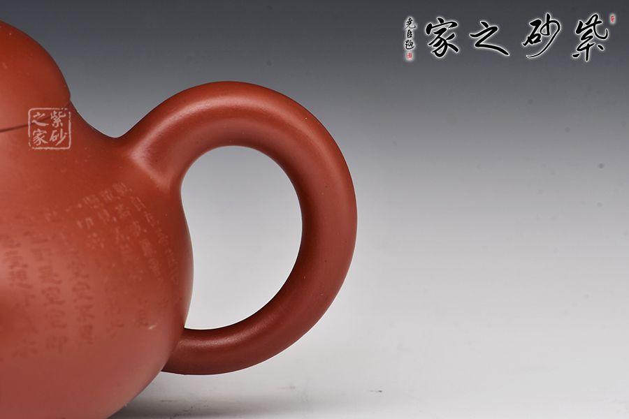整壺豐腴飽滿呈乳形,截蓋與壺體吻合嚴(yán)密,圓珠壺鈕綴蓋頂,氣韻充沛。一彎流,圓耳把,線條流暢。出水爽利、持握舒適的實(shí)用佳器,薦藏。