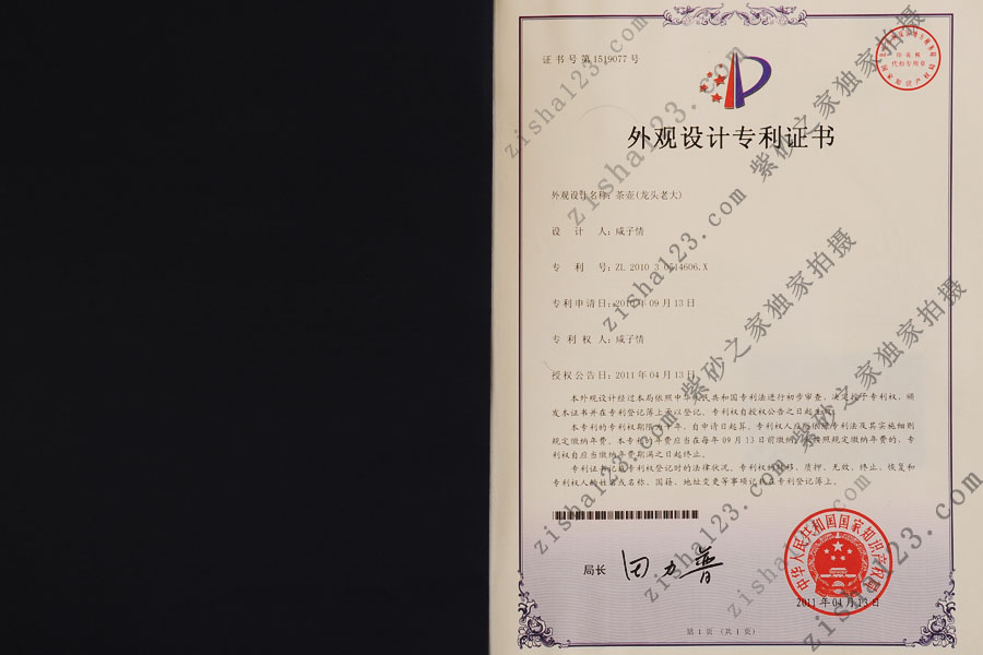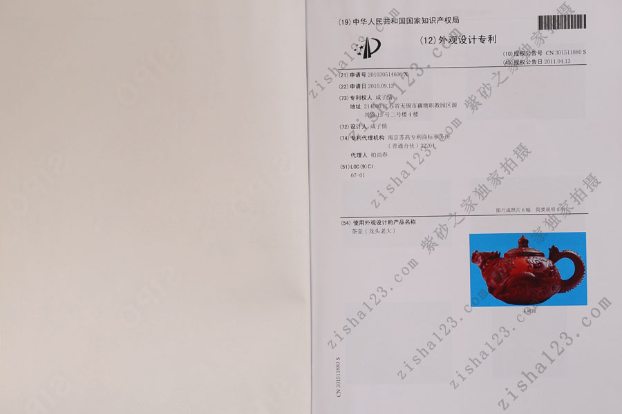 2010年9月《玲瓏壺》獲國家知識產(chǎn)權局外觀設計專利
