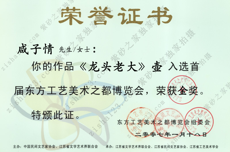 2007年1月《龍頭老大》獲東方工藝美術之都博覽會金獎