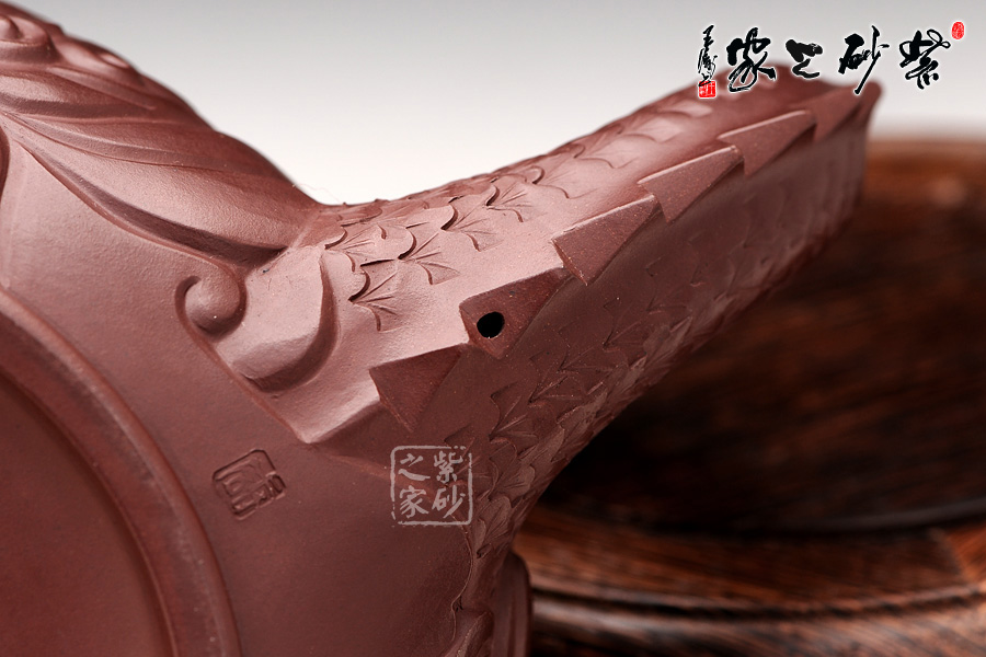 龍尾壺把下端根部有一枚小小的孔,可以看出壺把的設計是空心的,空心燒制是不易碎,且使其更具支撐力,同時足見作者的工藝之精