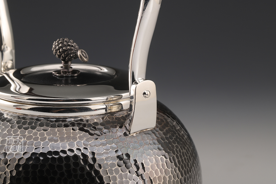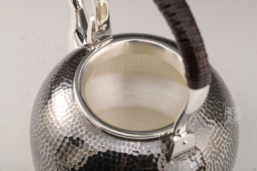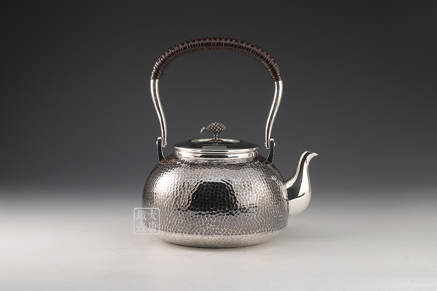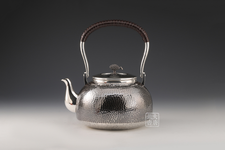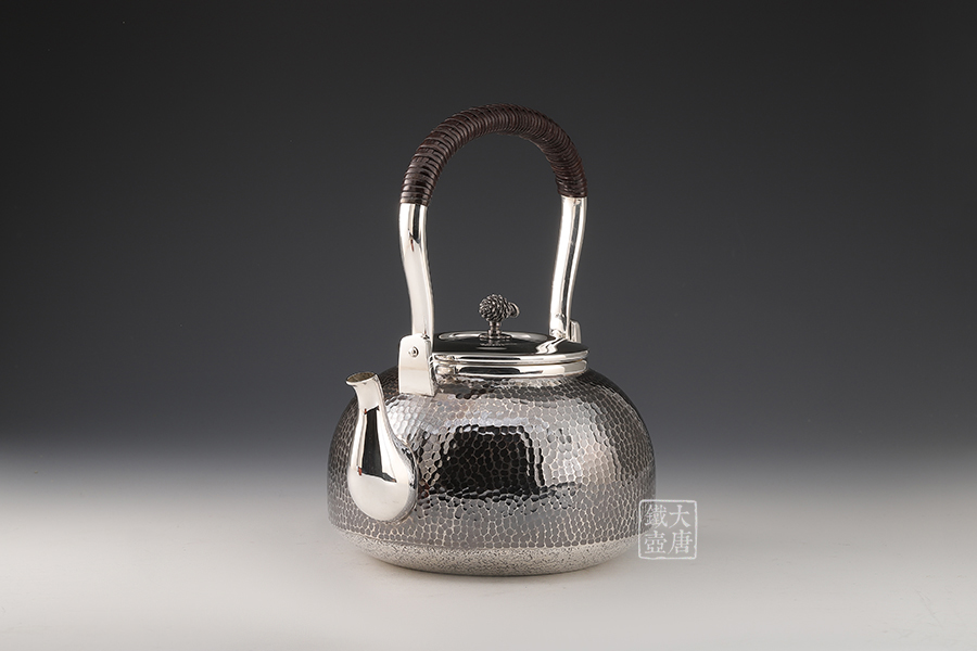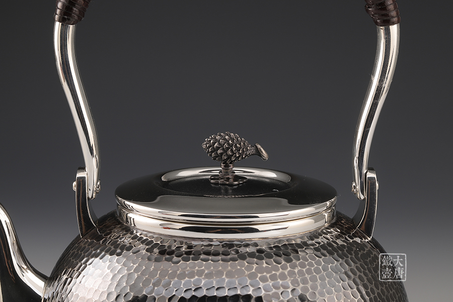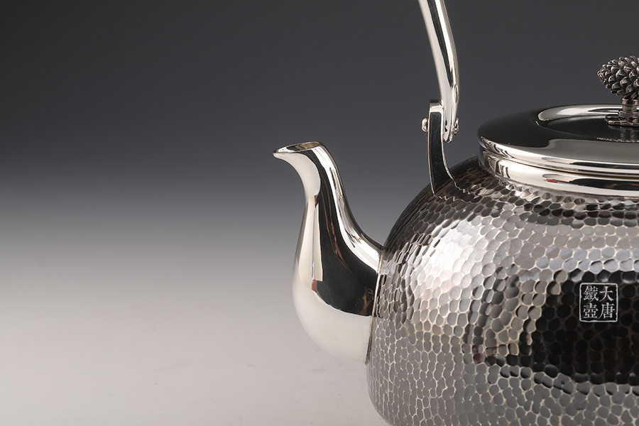 傳統(tǒng)鍛金工藝成型,壺身經(jīng)典手工錘紋,熏銀加飾,搭配鶴流彎嘴,松果摘鈕,更顯雅致美觀,品質(zhì)非凡。