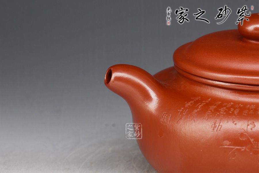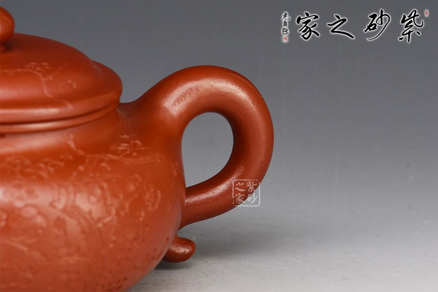 特點(diǎn):質(zhì)感綿密、緊實(shí)細(xì)緻,持之扎實(shí)沉重、紅潤豔麗,泥中極品,無以倫比;泥胚含少許原礦顆粒,沖淋熱水后色變極大,呈紅中帶紫,養(yǎng)壺易現(xiàn)“包漿”之美。