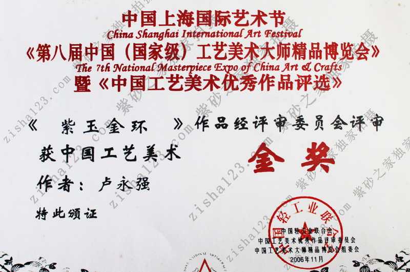 第八屆中國(guó)工藝美術(shù)大師精品博覽會(huì)金獎(jiǎng)