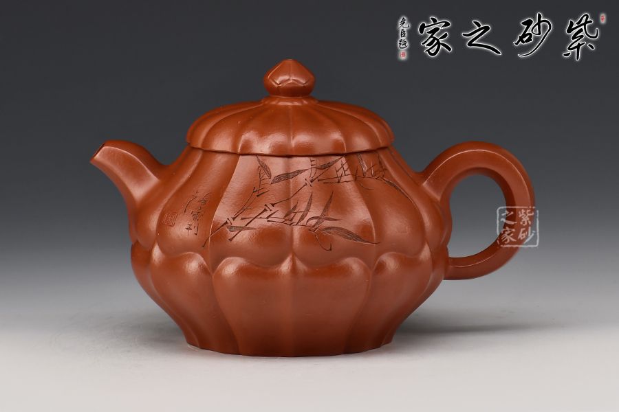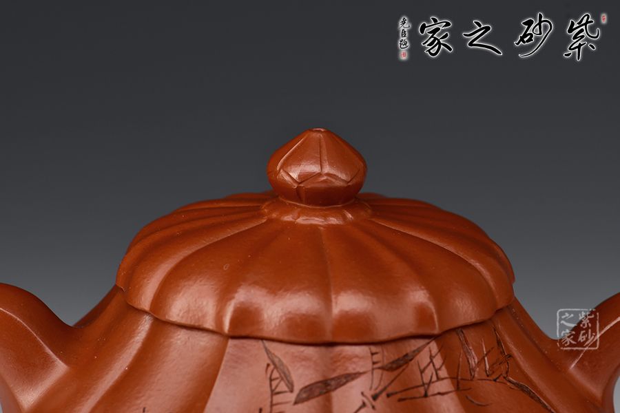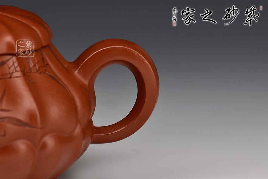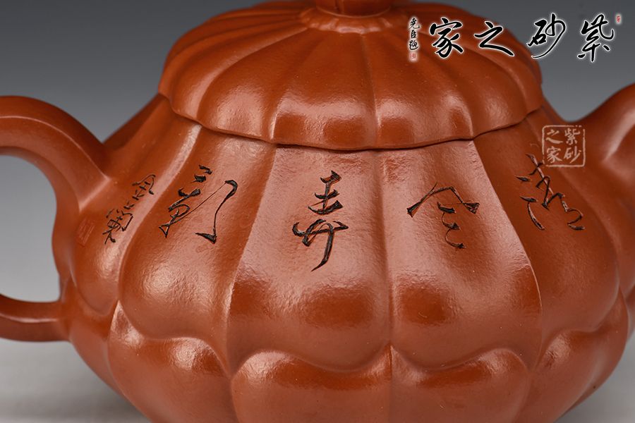 合菱壺,大紅袍泥料精制而成,手感柔和,紅艷奪目,氣質(zhì)高雅,其喜氣的味道可以和朱泥媲美。