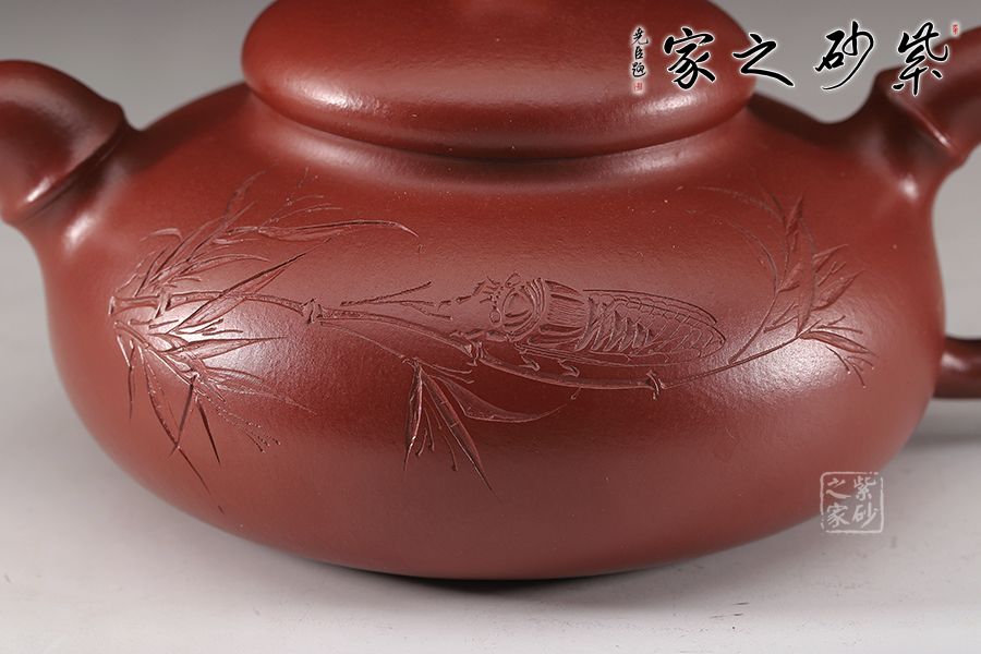 特點(diǎn):質(zhì)感綿密、緊實(shí)細(xì)緻,持之扎實(shí)沉重、紅潤(rùn)豔麗,泥中極品,無(wú)以倫比;泥胚含少許原礦顆粒,沖淋熱水后色變極大,呈紅中帶紫,養(yǎng)壺易現(xiàn)“包漿”之美。