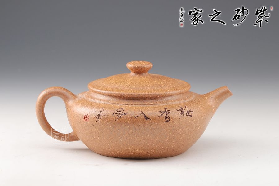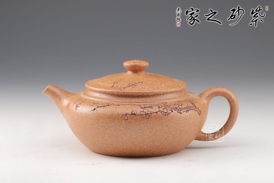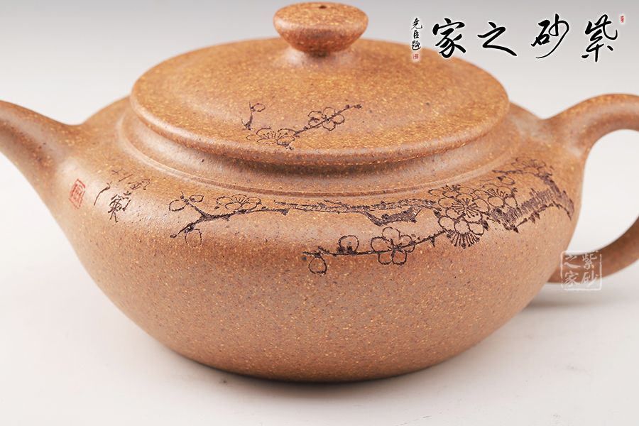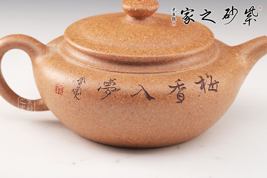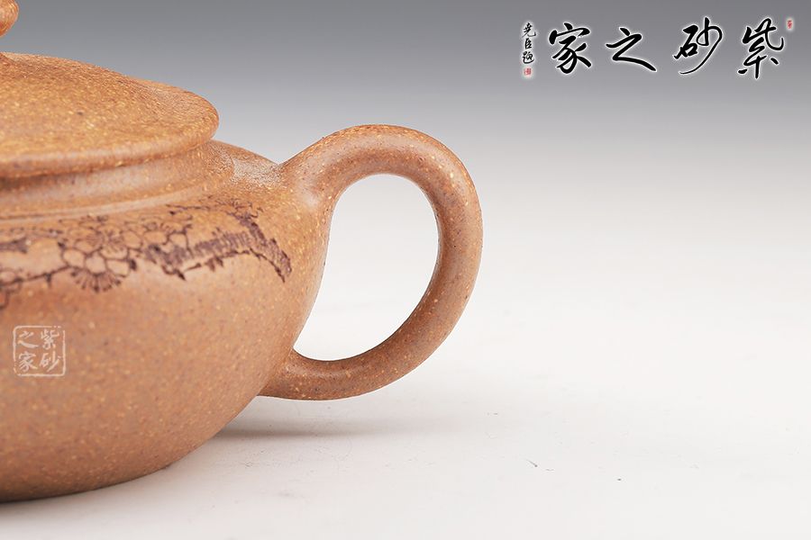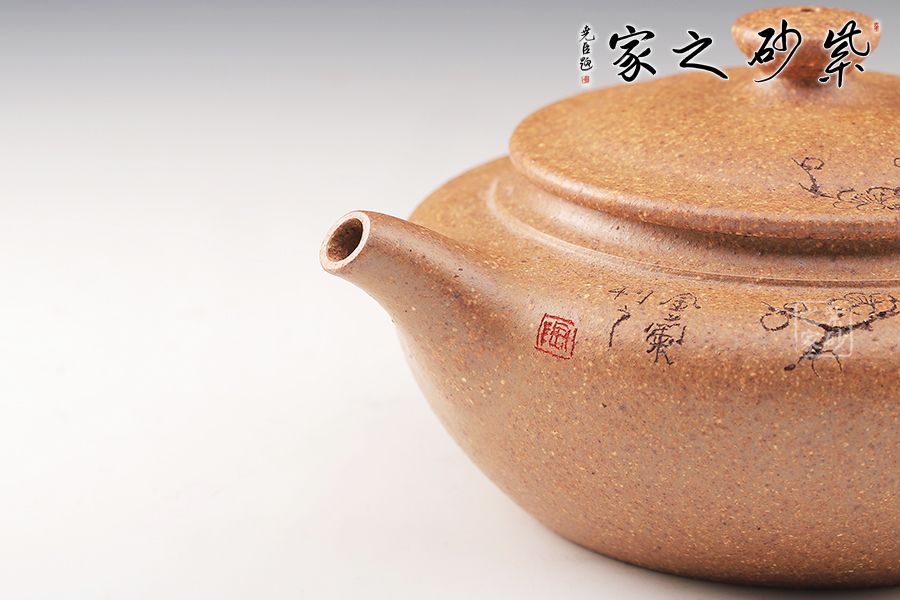 此壺壺身飽滿呈碗狀,線條靈動(dòng)。直流嘴設(shè)計(jì),涓香出口迅捷痛快。耳形壺把,豐斂明晰,弧度優(yōu)美??谏w氣密性佳,似有一肚茗香內(nèi)藏。壺鈕也似一小碗倒扣于其上,與壺身呼應(yīng),造型生動(dòng),令人愛不釋手。整器氣韻高雅自然,好似能載萬物,包容萬象。
