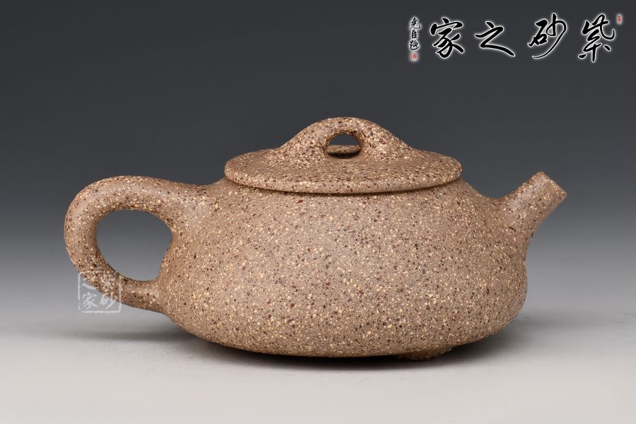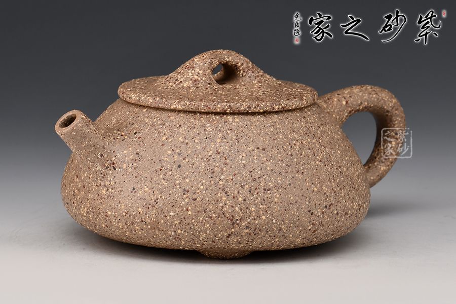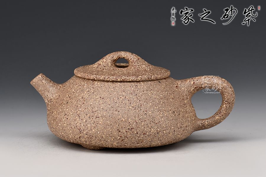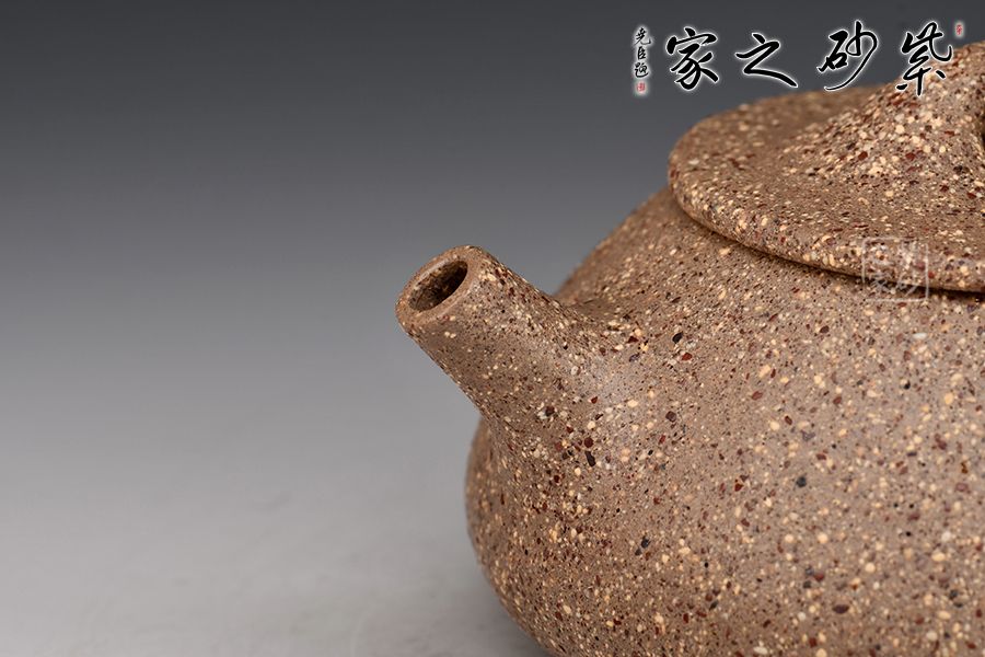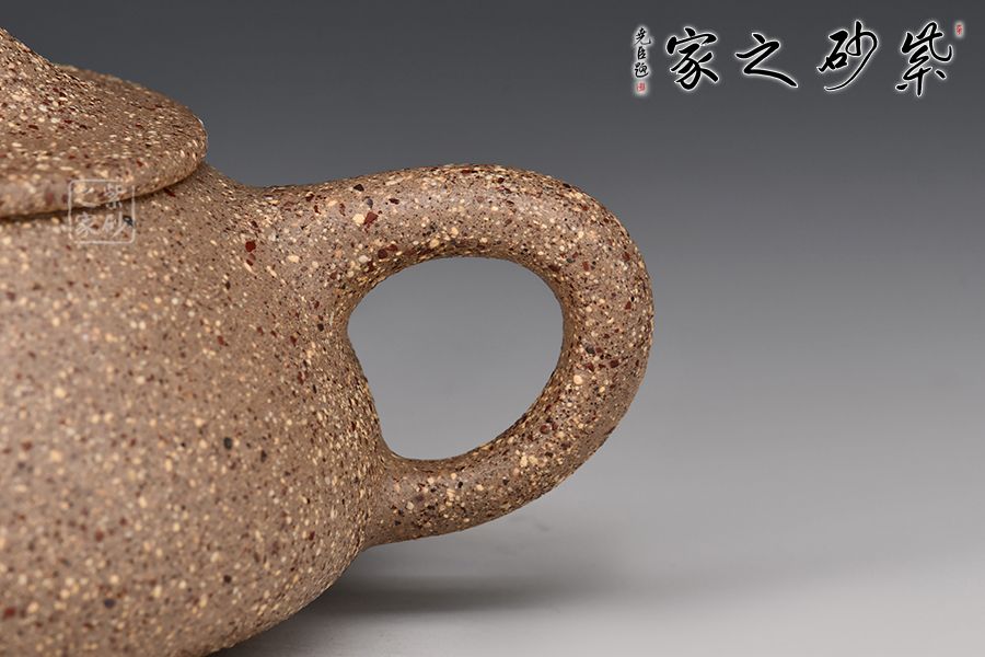 此壺為作者選用花生段,摹古精工而制,顆粒感十足,上手舒適。此景舟石瓢豐潤飽滿、骨肉亭勻,曲線柔和流暢,整體力道、氣韻、各部件的比例,拿捏得恰到好處,泡養(yǎng)效果出色,實為一把好料精工的泡茶利器。