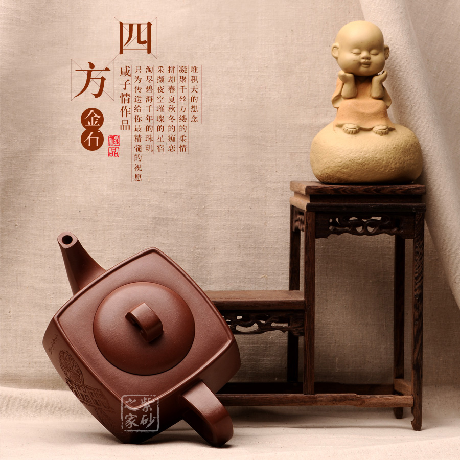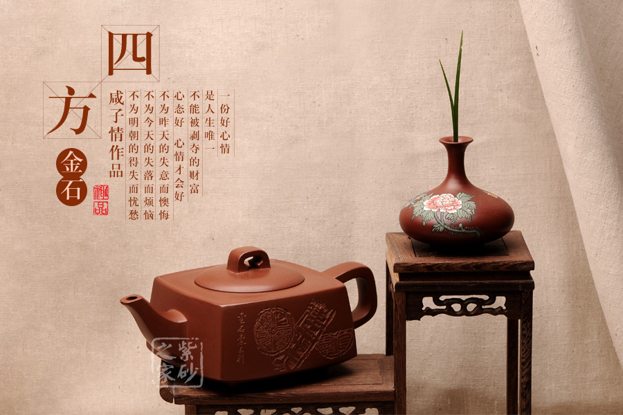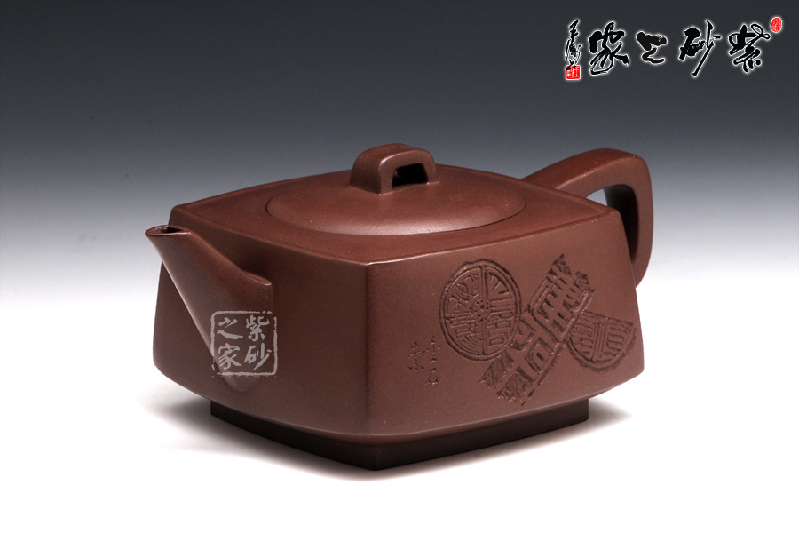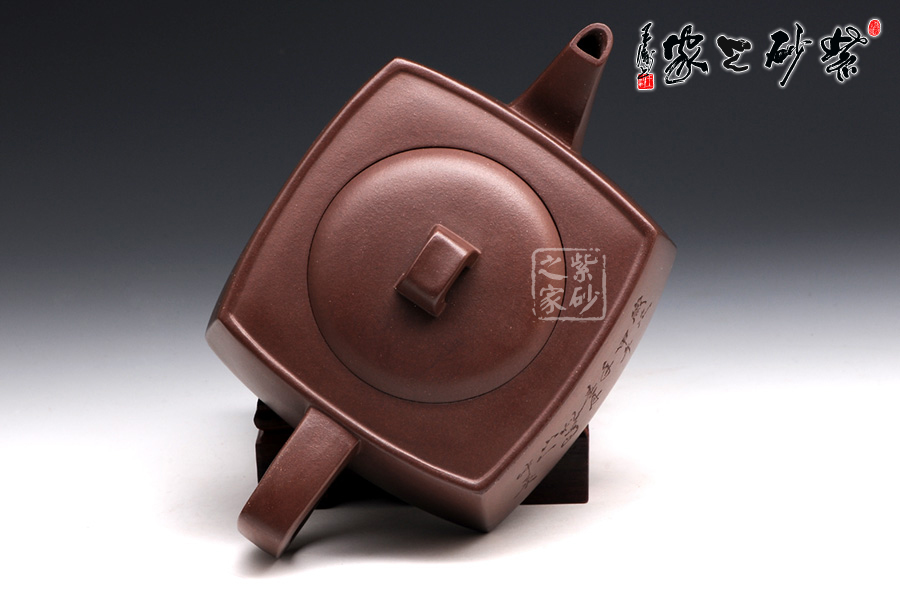 此壺壺型形似天地方圓,將方與圓的藝術(shù)完美的融合在一起,更好的詮釋了方圓的藝術(shù)美感。此壺做工細致,壺身線條柔和飄灑,紋理簡單大氣,色澤淳樸典雅。壺身方而不銳利,壺蓋圓而泛霞 光,橋形鈕孔洞呈如意形,壺把、壺嘴皆呈方形,整個壺體剛?cè)岵?,婉轉(zhuǎn)而又大氣。