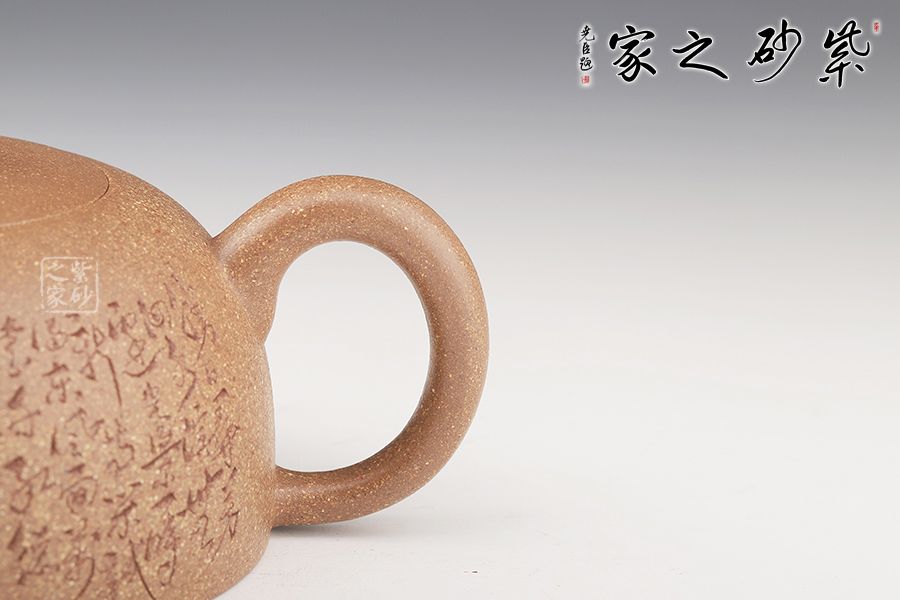 半月是傳統(tǒng)壺型之一,以半個(gè)月亮為壺型,整個(gè)壺身都十分柔軟溫和,邊緣處都以溫和的弧度過(guò)渡;壺底平整,端莊穩(wěn)重;壺鈕珠圓玉潤(rùn),截蓋設(shè)計(jì)十分嚴(yán)謹(jǐn),嚴(yán)絲合縫,整個(gè)壺渾然一體,協(xié)調(diào)一致,同時(shí)滿足了實(shí)用要求;暗接一彎流嘴短粗勻稱,嘴頭有些微的收縮,不僅增添柔美氣韻,實(shí)用性也得到極好的彰顯;圓圈把隨壺身之勢(shì),暗接溫和大氣,與壺嘴的流勢(shì)相應(yīng)和。