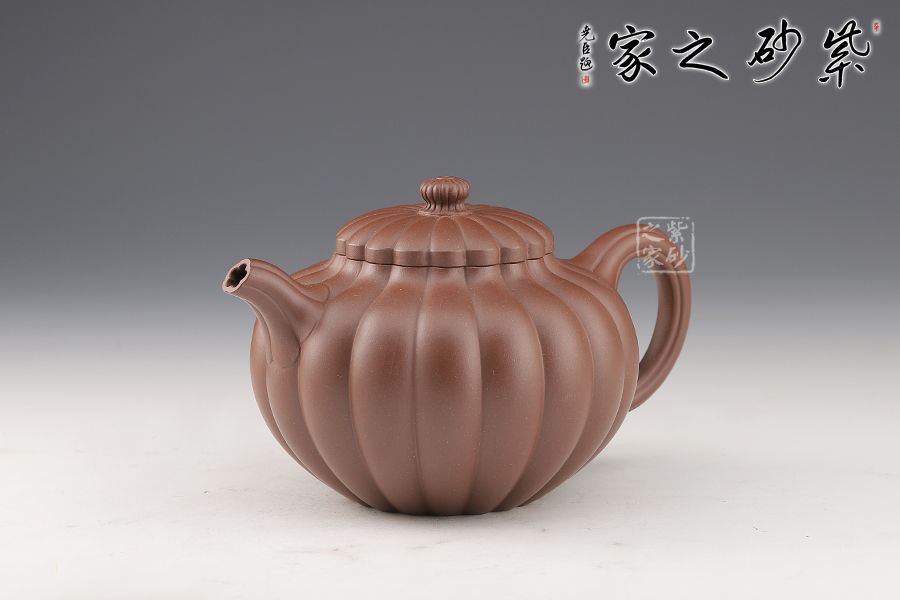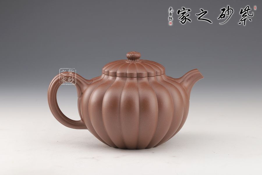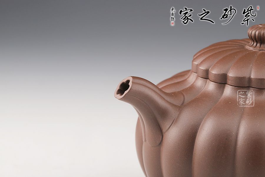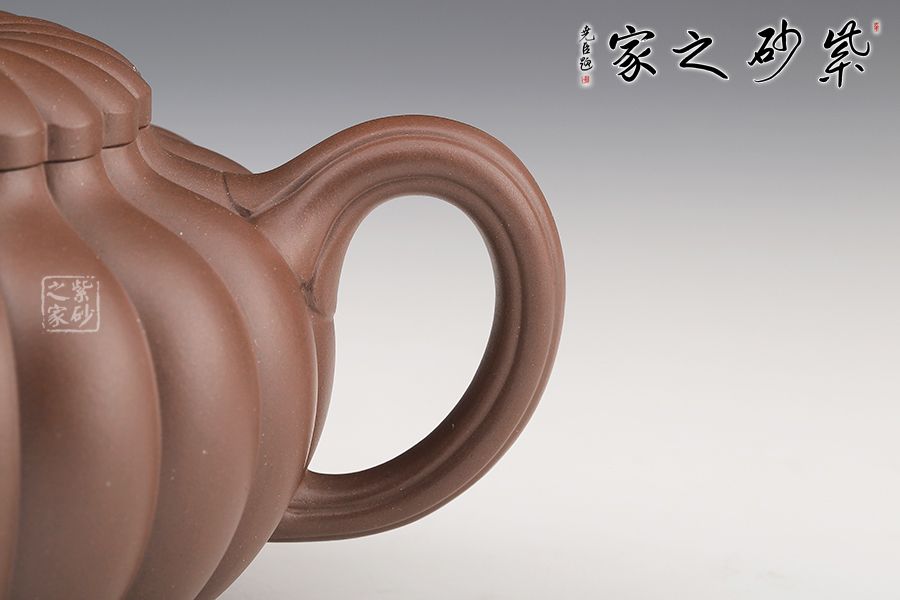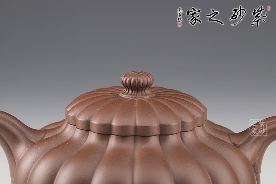 此筋紋菊蕾壺體造型仿自然界中菊蕾之形,筋紋瓣瓣分明,凹下去的紋路,凸顯出肌理的飽滿與瑩潤。平蓋蓋沿微微上卷,弧度微妙又極其自然,口、子口皆為花型,瓣瓣吻合;揭下壺蓋看內(nèi)里,囊瓣層層鋪疊、綻放,美極! 壺身線條收攏于壺底一圓點,壺鈕造型亦為一朵緊緊合攏著的菊蕾,與壺身上下呼應(yīng)。形容此菊蕾壺為“可一手掌握的筋紋藝術(shù)品”正是恰如其分,實用與收藏價值兼具的紫砂精品,薦藏!