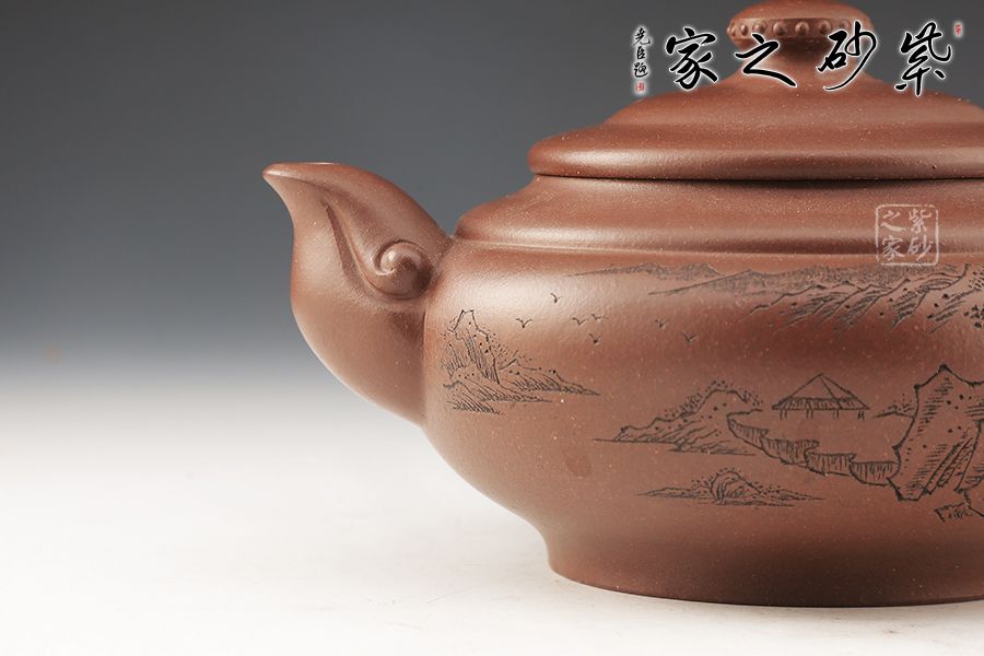 天際壺總能讓人第一時(shí)間想到李白的《黃鶴樓送孟浩然之廣陵》中“孤帆遠(yuǎn)影碧空盡,唯見(jiàn)長(zhǎng)江天際流”兩句話。此壺制作精巧,獨(dú)具匠心,壺身渾圓,威武大氣。壺把從壺身肩部向上伸出,再巧妙收于壺腹之處,線條飄逸優(yōu)美,壺身飽滿。壺嘴、把手等輪廓線既照應(yīng)又和諧,生動(dòng)自然,宛若生成。