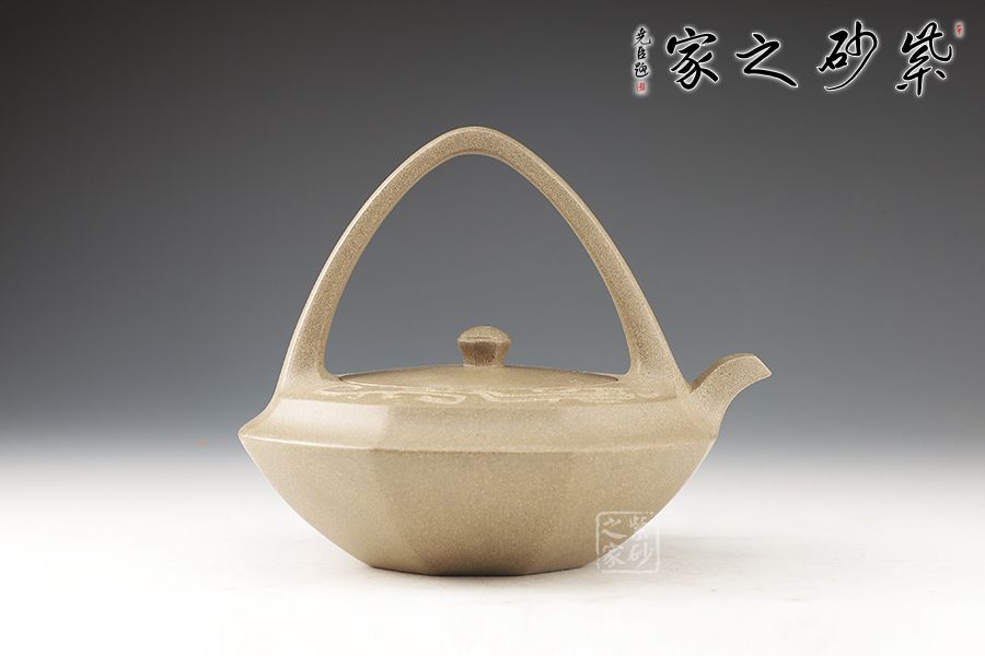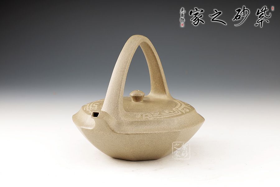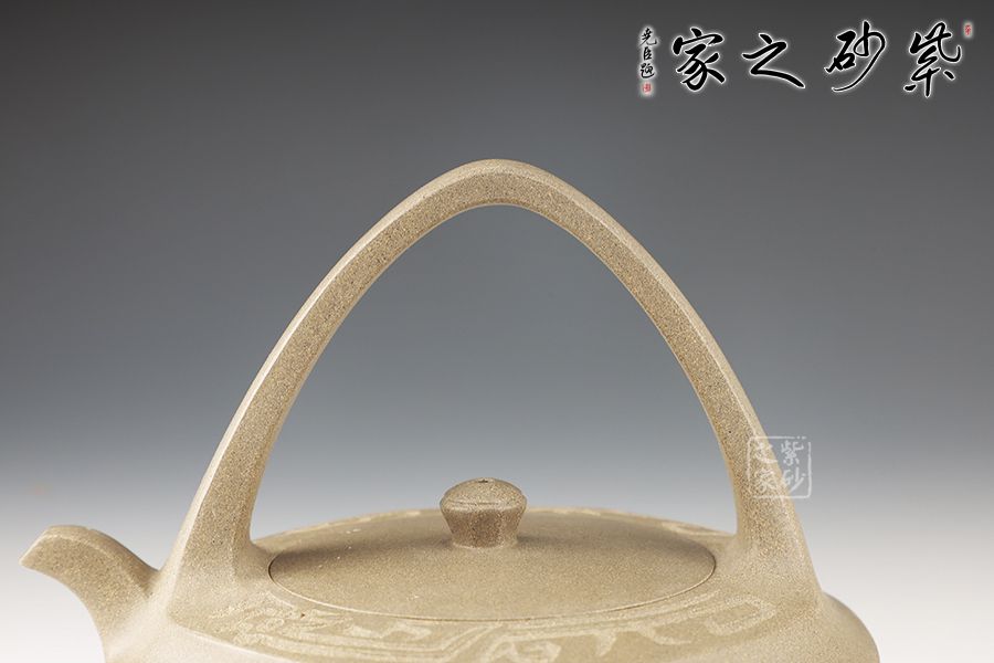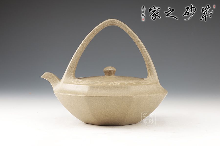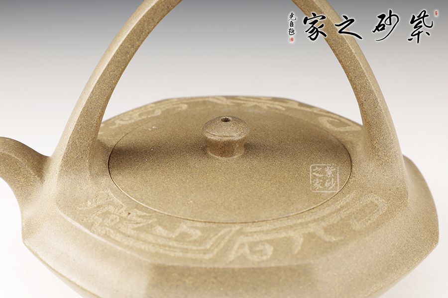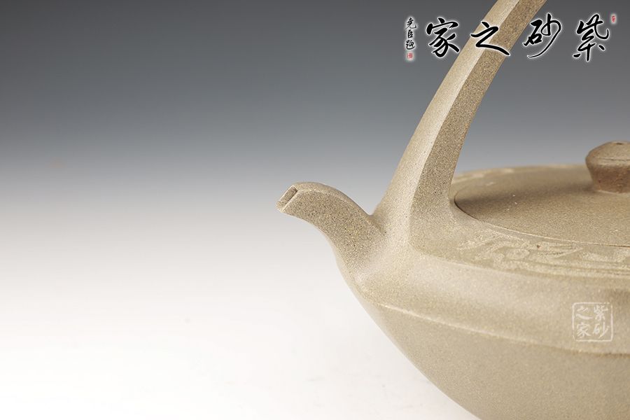 壺嘴同樣是六條棱線勾勒而成,嘴頭細(xì)膩見柔美。而提梁把更是方形的質(zhì)感,更多一份與壺身融合而為一體的氣息。