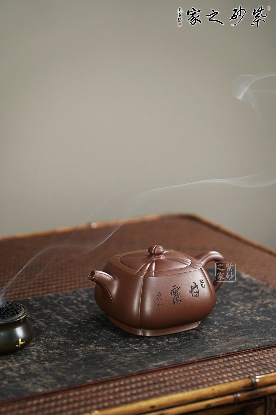 季益順,紫砂四小龍之一,中國(guó)陶瓷藝術(shù)大師,江蘇省工藝美術(shù)大師,紫砂藝術(shù)承前啟后的扛鼎人物。 精選原礦紫泥全手工制作而成,泥質(zhì)細(xì)膩,明潤(rùn)高雅。壺身呈四方,方圓結(jié)合,又裝飾筋紋線條,難度極高。一彎嘴出水爽利,耳把拿捏舒適。嵌蓋設(shè)計(jì),嚴(yán)絲合縫,四方筋紋壺鈕設(shè)計(jì)巧妙。加入圈底,挺拔壺身。此外,壺身鮑志強(qiáng)刻繪,正面“甘露”兩字,反面一叢蘭草,雙國(guó)大師合制,入手升值,喜歡的壺友不要錯(cuò)過(guò)!