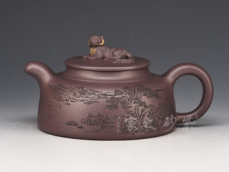 詩畫饋贈(zèng),領(lǐng)略文人之風(fēng):其作品多以厚重的文化底蘊(yùn)和精巧的刻繪工藝見長,這得益于其對(duì)書畫的極高造詣,一字一景耐人品評(píng),若能解其中之味,便能一語道破壺中天機(jī)。不時(shí) 有題詞或畫作贈(zèng)予壺友,互相交流學(xué)習(xí)。王濤之壺,文人之壺,茶香和著詩韻,乃是壺的精髓所在。近年來的紫砂作品傳統(tǒng)為主,力圖創(chuàng)新,具有鮮明的個(gè)性和文化特征。
