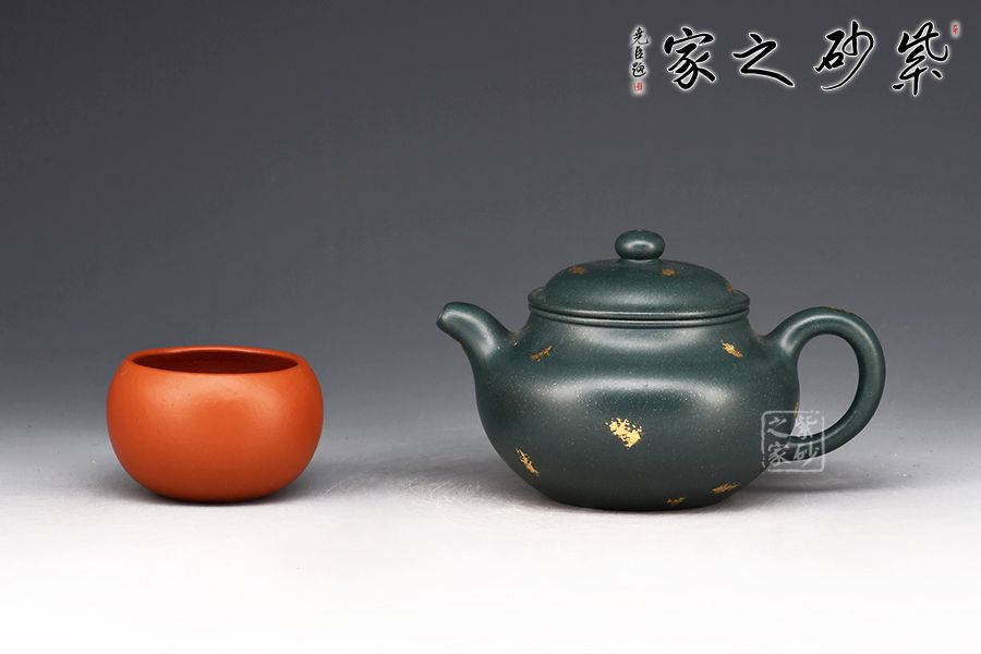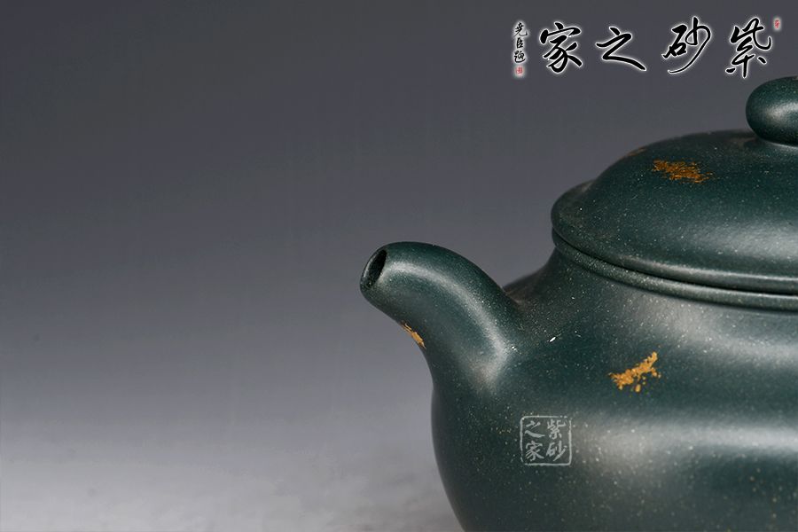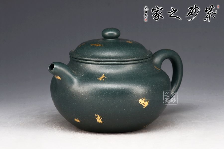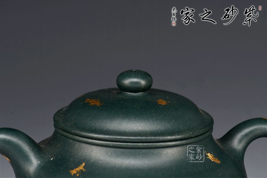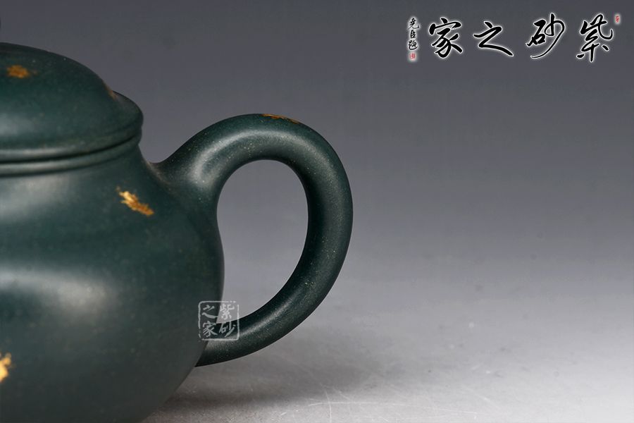 此壺采用的蘇門答臘青蘇的泥色,與戧金工藝相得益彰。選用這款泥色,用其色彩體現(xiàn)沉穩(wěn),來(lái)回應(yīng)中華文化里的穩(wěn)重;戧金工藝的金色點(diǎn)綴,帶來(lái)“動(dòng)”感元素,與穩(wěn)重,與“靜”相兼容。使這款仿古壺在氣韻上比傳統(tǒng)的仿古壺略勝一籌。