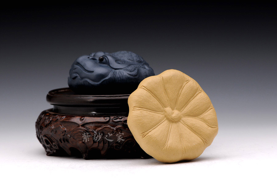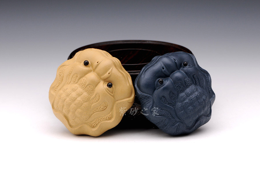 選用原礦紫砂泥手工制作,其色澤溫和典雅,工藝細膩精致,造型雅趣十足,雜件底部為荷葉造型,荷葉上伏一只金蟾,寓意和氣生財,十分的有趣卻意義非凡,適合以手把玩,非常的舒適!