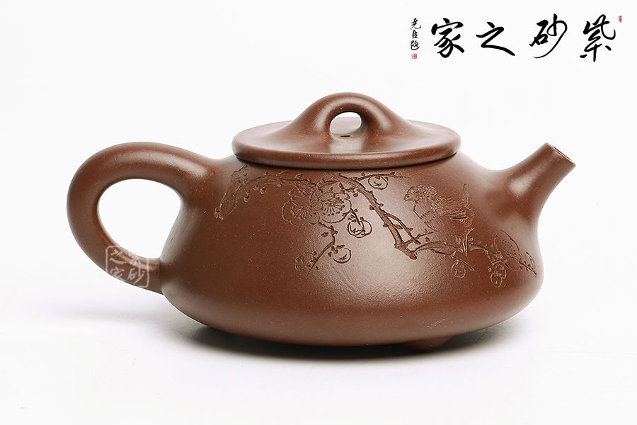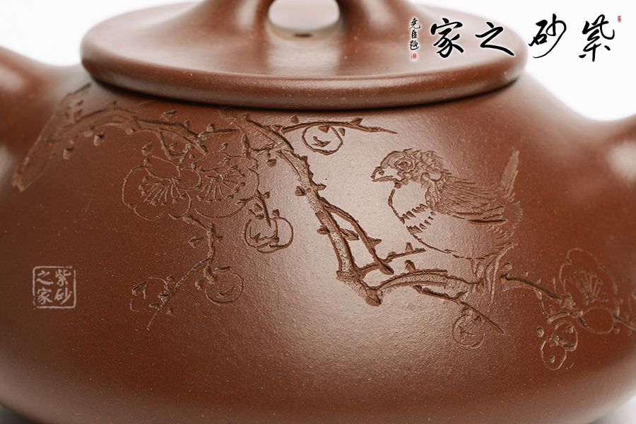 壺身雙面刻繪,正面刻繪詩(shī)詞,反面刻繪梅花綻放之姿,詩(shī)情畫(huà)意,茶韻悠悠,觀賞性、實(shí)用性俱佳。