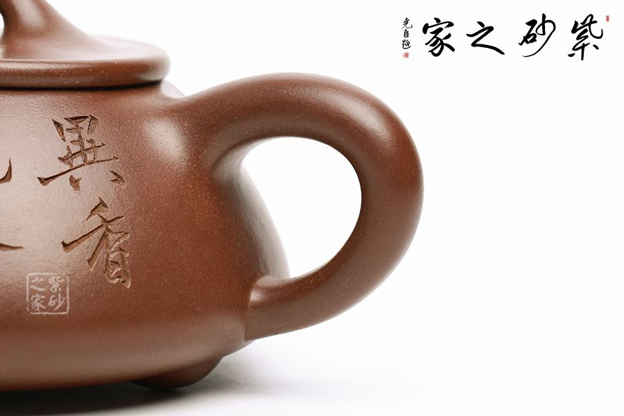 此壺摹古而作,精選紫泥全手工制成,泥色古雅清麗,造型簡(jiǎn)約大方。