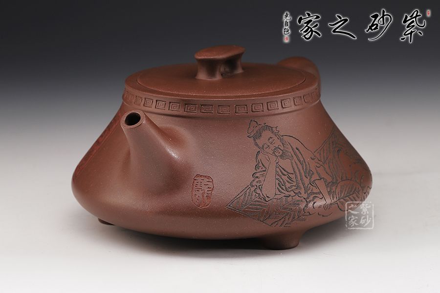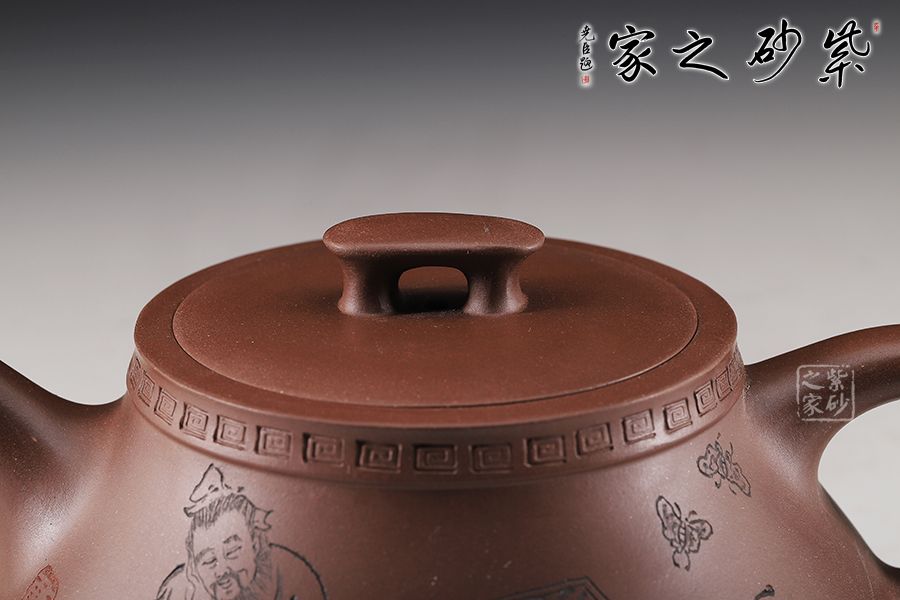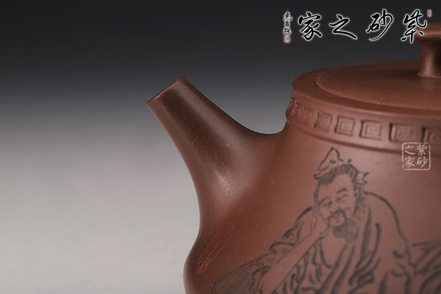 原礦羊脂泥,不加任何化工染料,色澤純正、柔和,手感舒適,只可意會(huì)不可言傳。自發(fā)黯然之光,入手可鑒,于是器身玉色晶光,此壺的的流把均顯細(xì)膩,直流嘴挺峭而出,與壺把的三角形相應(yīng)和,使用此壺泡茶韻味十足,很是實(shí)用。
