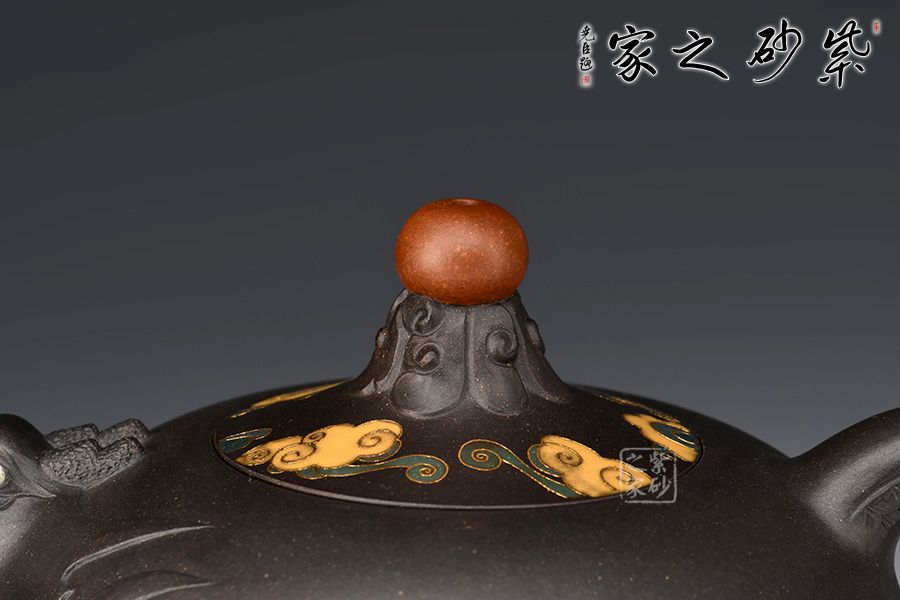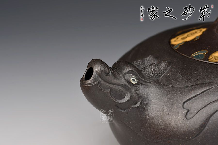 這款“龍的傳人”造型簡練大氣。壺腹圓潤豐腴,穩(wěn)如泰山;龍嘴飛把,嵌蓋嚴(yán)實,紅日作鈕,細(xì)部刻畫精妙,古拙而富有吉祥靈韻。