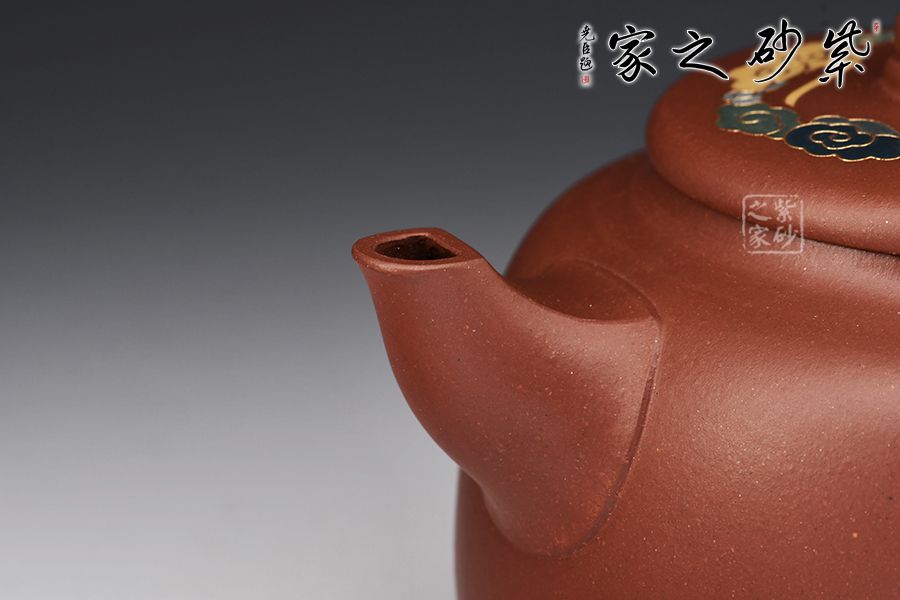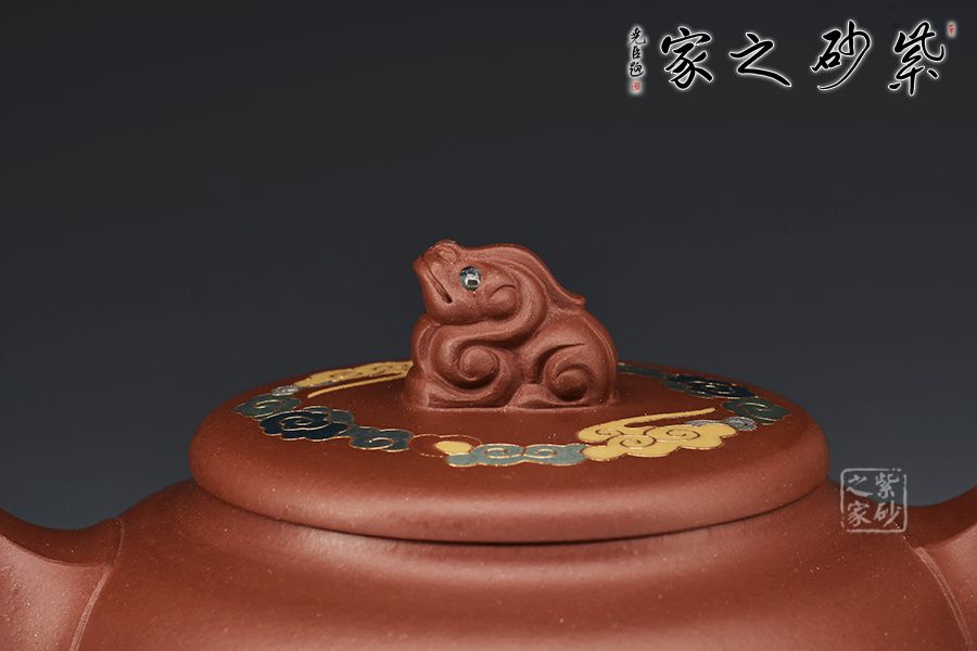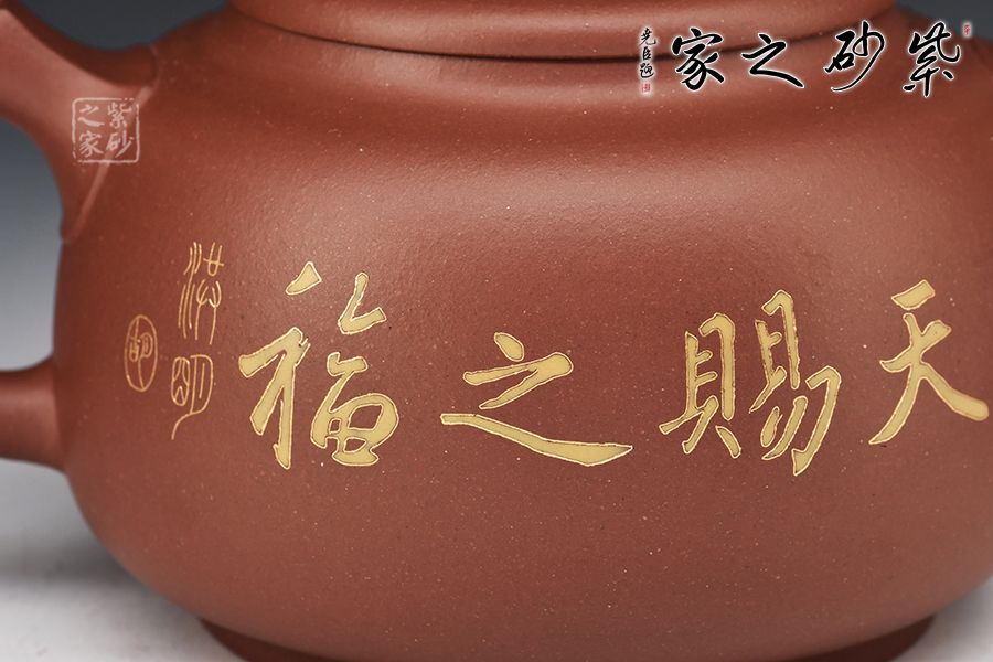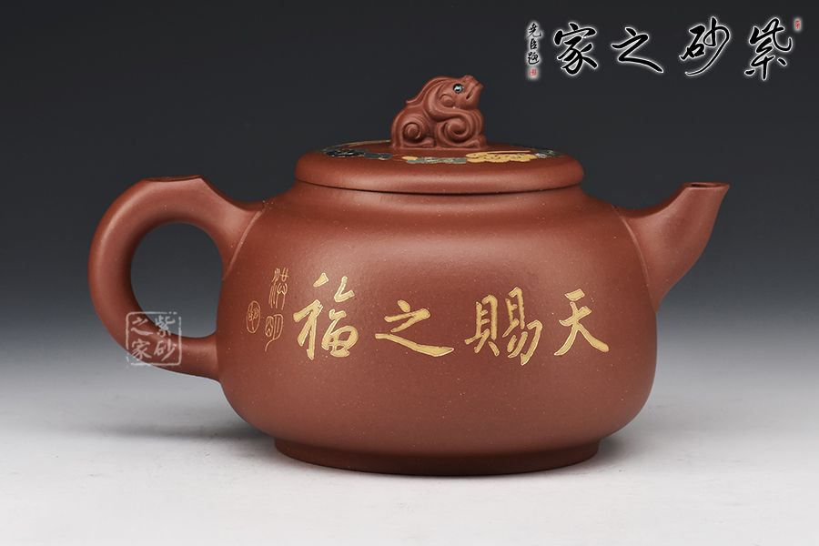 此壺壺身圓滾飽滿,寓意福氣滿滿,壺鈕為一只貔貅,仰望天空,與壺身背面“天賜之?!毕嗪魬?yīng)。壺身壺蓋采用金銀錯工藝,大容量大口蓋易投茶葉,既實用又寓意美好,必入款!