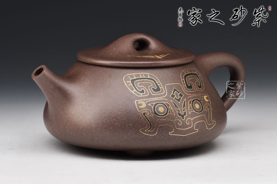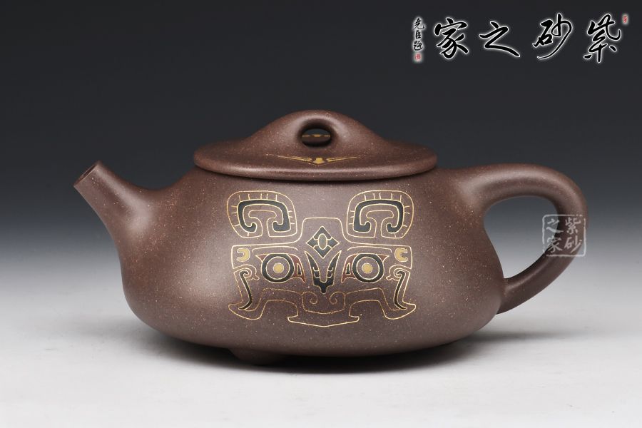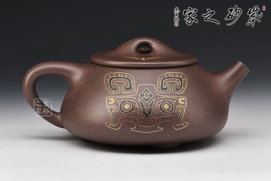 弱水三千,只取一瓢飲,石瓢壺為傳統(tǒng)經(jīng)典器型,此壺由金銀錯(cuò)第一人、當(dāng)代“鑲金裝飾巨匠”胡洪明制作,在傳統(tǒng)石瓢的基礎(chǔ)上加之金銀錯(cuò)工藝,有錦上添花之感!