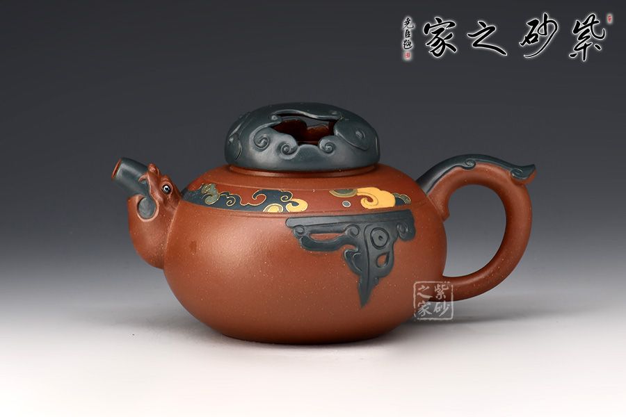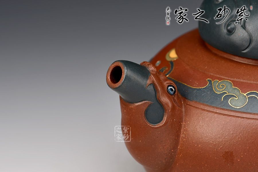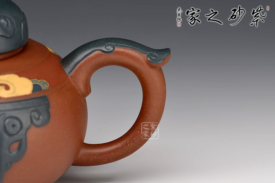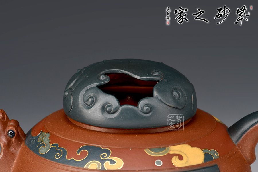 尤其是壺嘴把的雙色結合,壺鈕的祥云鏤空設計,難度超高,足見老師功力非凡,而此壺制作耗時耗力,成品難得,推薦收藏!