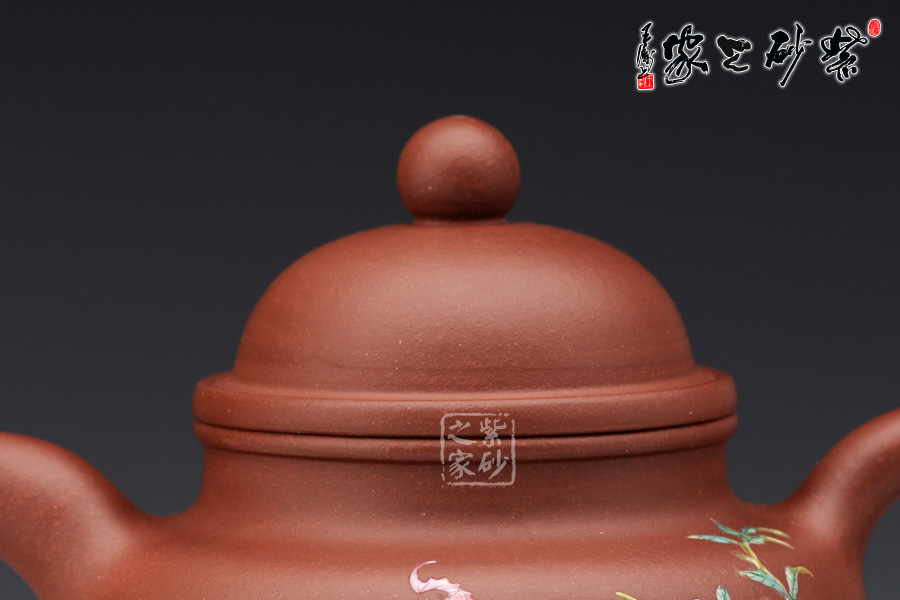 此壺采用的裝飾技法是江政凌老師極為擅長的琺瑯彩裝飾手法,紫砂的古樸、厚重與陶瓷 彩繪藝術(shù)的完美結(jié)合,凸顯出作品的靈巧與現(xiàn)代意蘊,彩繪藝術(shù)更加具有深厚的傳統(tǒng)文化內(nèi)涵,二者相輔相成、相得益彰,將紫砂藝術(shù)提升一個更高的藝術(shù)境界,如 今紫砂加彩藝術(shù)十分新穎,在紫砂行業(yè)中脫穎而出。
