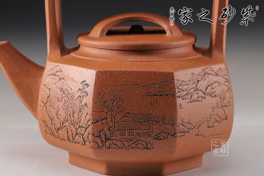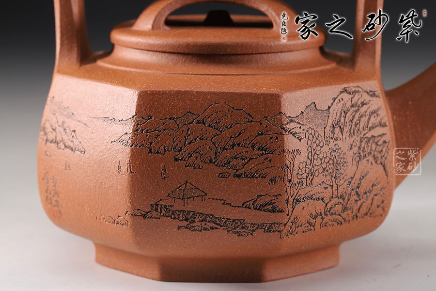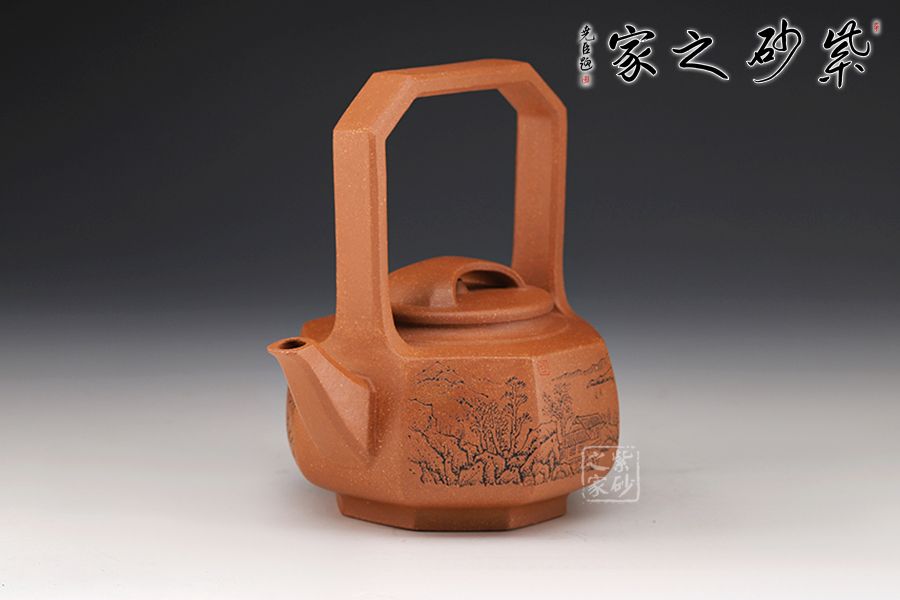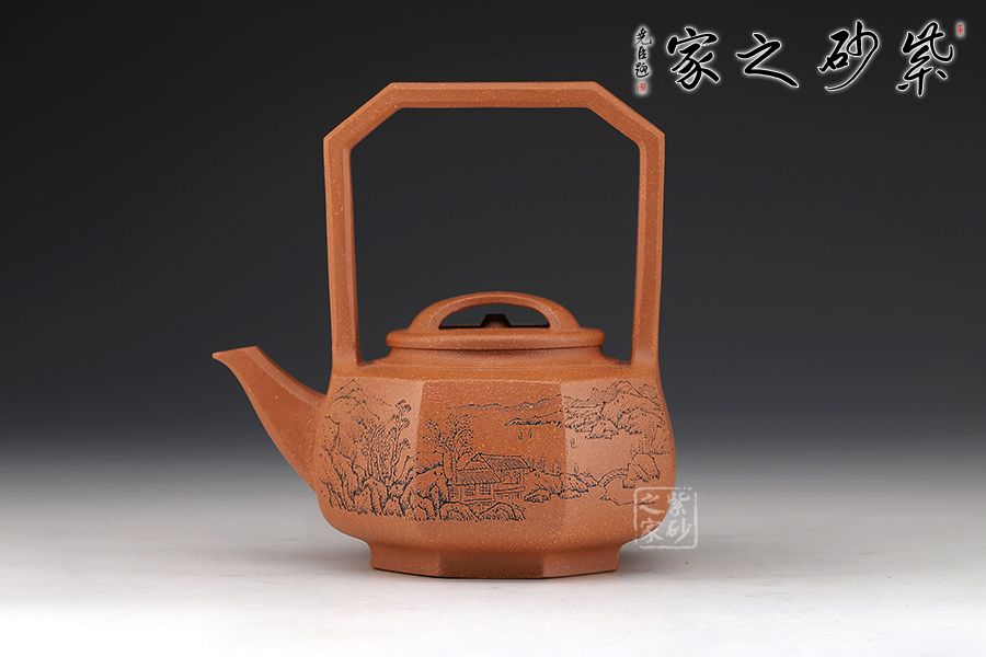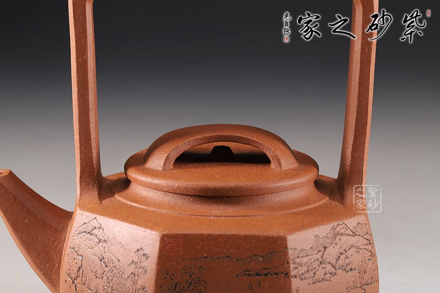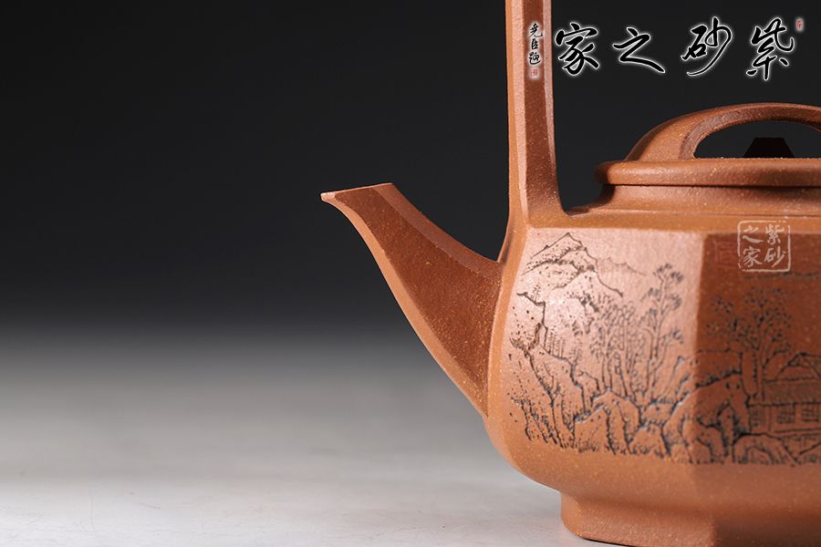 八方提梁,是一款大氣古樸的壺型,這款作品以簡(jiǎn)練的線條構(gòu)成淳樸凝重的形體,深厚且具神韻,設(shè)計(jì)上空間明快,虛實(shí)和諧,提攜舒適,線條柔和,使整體造型更加雄渾肅穆。八方壺身,壺肩過(guò)度溫婉,肩線轉(zhuǎn)變有致,壺底加高,更顯雄壯威嚴(yán),提梁挺立有感,明接彎流,嘴型曲線柔和,粗細(xì)過(guò)度適中,出水爽利。