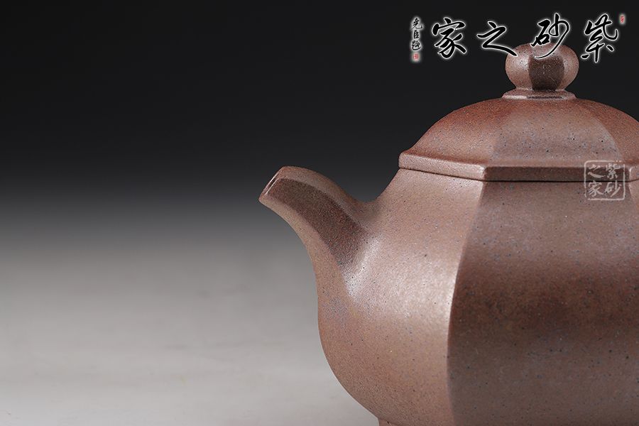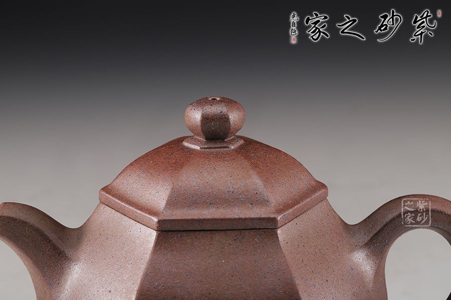 壺身六方,更添了一份剛毅,二彎流六方壺嘴自然胥出,壺嘴、壺鈕、壺把同是六方形態(tài),和諧統(tǒng)一;且壺把及壺鈕三點一線,協(xié)調(diào)不亂,子母線嚴絲密縫,整款器型匠心獨運,心思巧妙,此乃經(jīng)典之作,饋贈還是自用,都別有一番韻味。