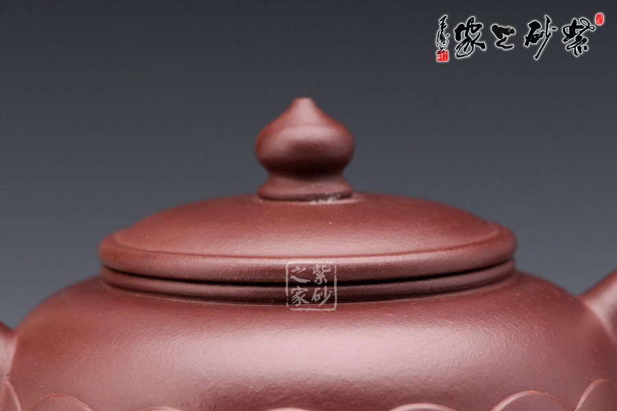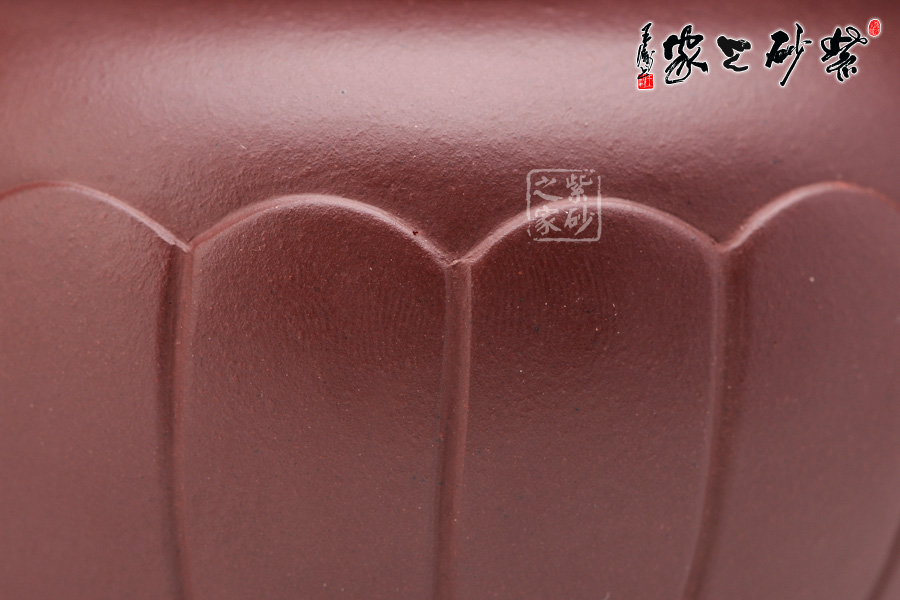 整款壺圓融與直爽并蓄,整體簡(jiǎn)潔,而細(xì)節(jié)豐腴;桃形鈕稚拙有味,壓蓋設(shè)計(jì)子母線嚴(yán)絲合縫,蓋面溫和柔美;壺身飽滿,壺底圈足較壺口更小,顯得更為端莊挺括;壺肩以下以菊瓣筋紋包圍四周,菊瓣均勻飽滿,工藝極為細(xì)膩,形成凹凸有致的曲面,整款壺顯得變化豐富,富有情趣;明接一彎流纖柔胥出,十分有勁,出水成股;耳形飛把明接精湛,把隨身勢(shì),端握舒適。