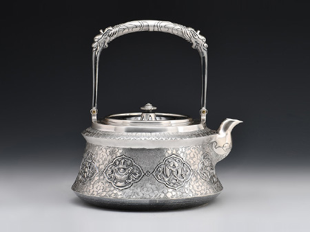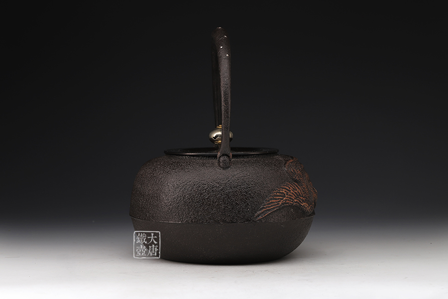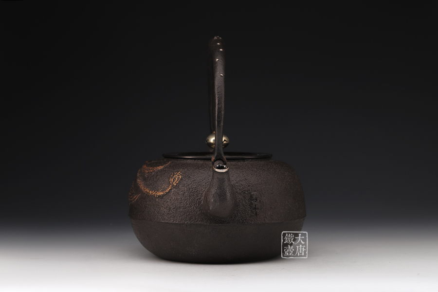 荒井工房的鐵瓶除了在鑄造工藝上有嚴格的規(guī)范和體系,在鐵瓶裝飾技術(shù)上也頗有建樹。除了傳統(tǒng)的印刻技術(shù)外,荒井工房還掌握了非常出色的金銀鑲嵌技藝,尤其以大片的鏨刻銀片最為出眾,這在山形當?shù)靥每谥歇殬湟粠谩?/p>