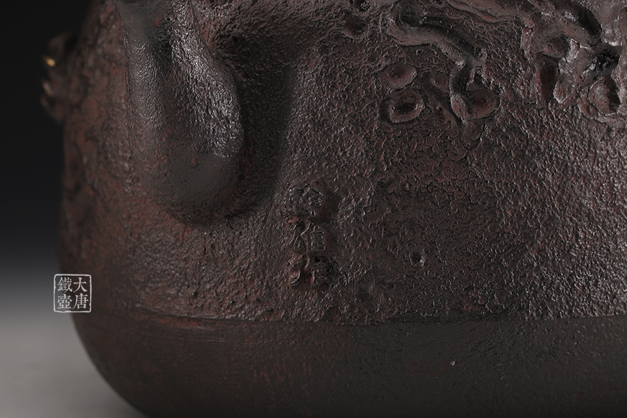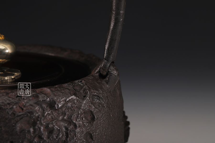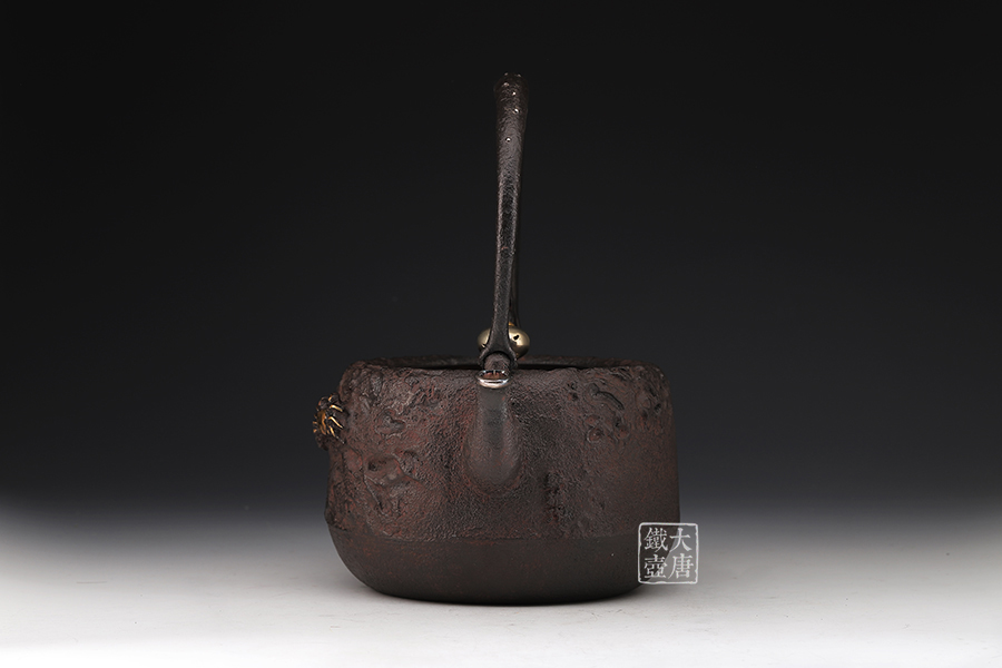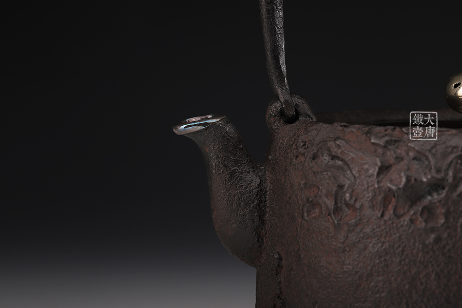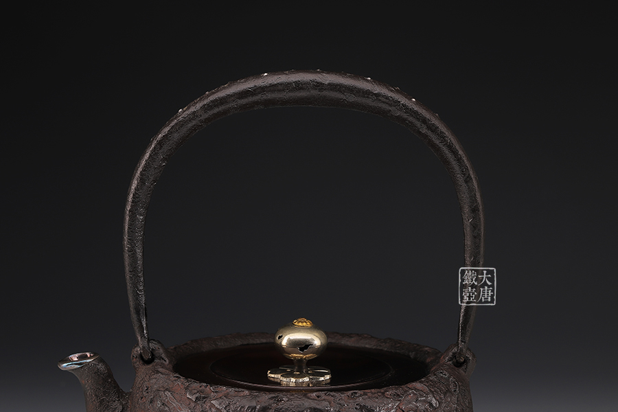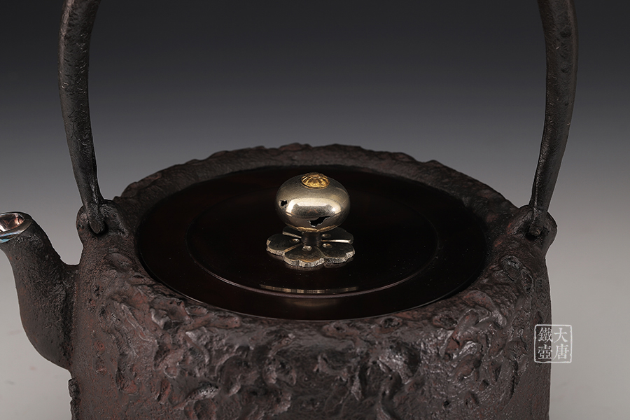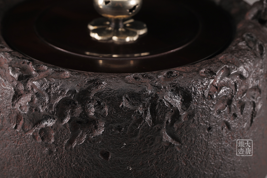 荒井工房的鐵瓶除了在鑄造工藝上有嚴(yán)格的規(guī)范和體系,在鐵瓶裝飾技術(shù)上也頗有建樹。除了傳統(tǒng)的印刻技術(shù)外,荒井工房還掌握了非常出色的金銀鑲嵌技藝,尤其以大片的鏨刻銀片最為出眾,這在山形當(dāng)?shù)靥每谥歇?dú)樹一幟。