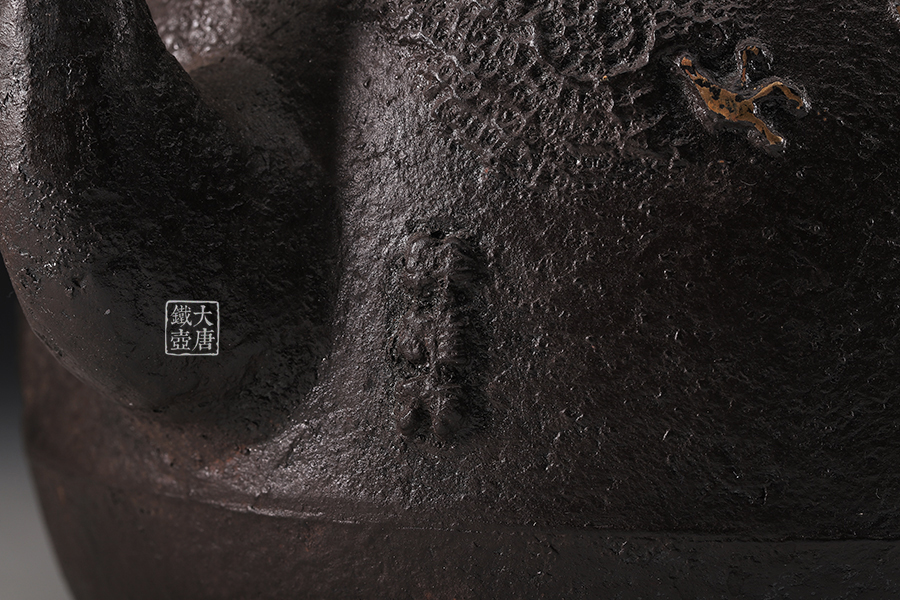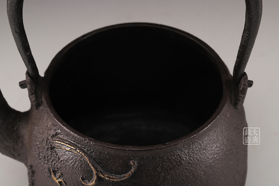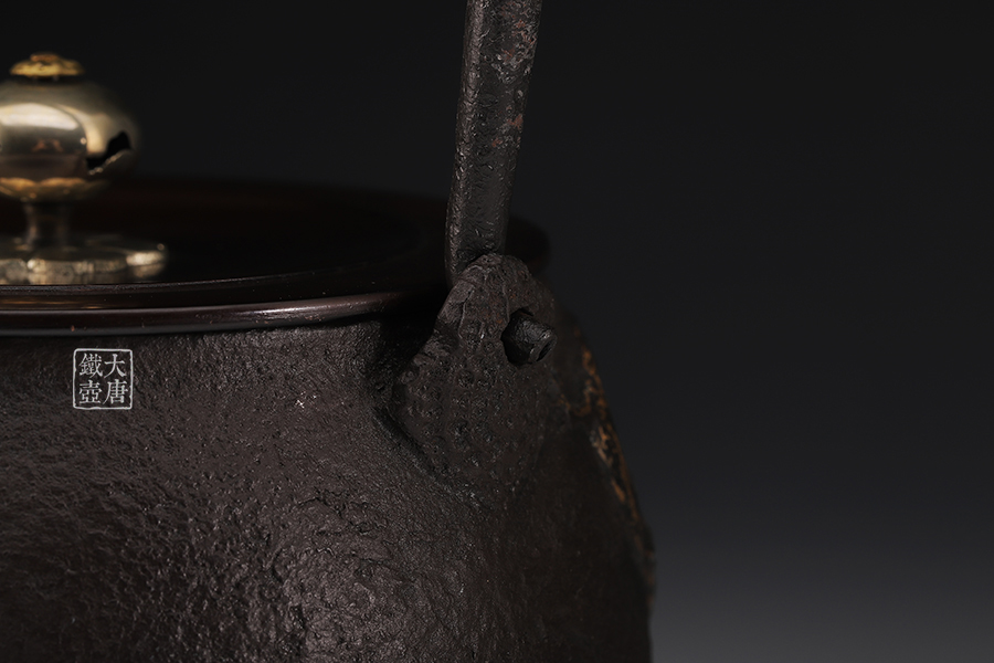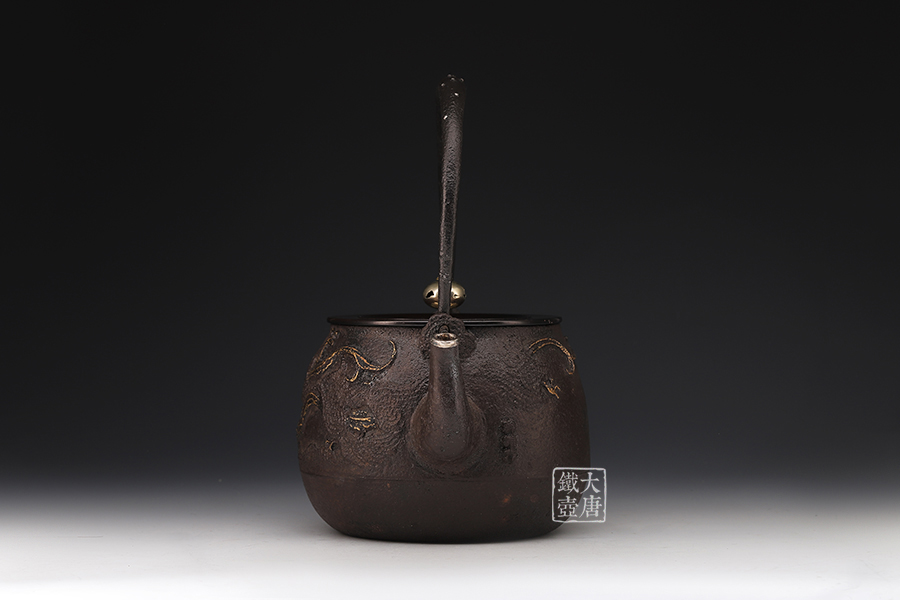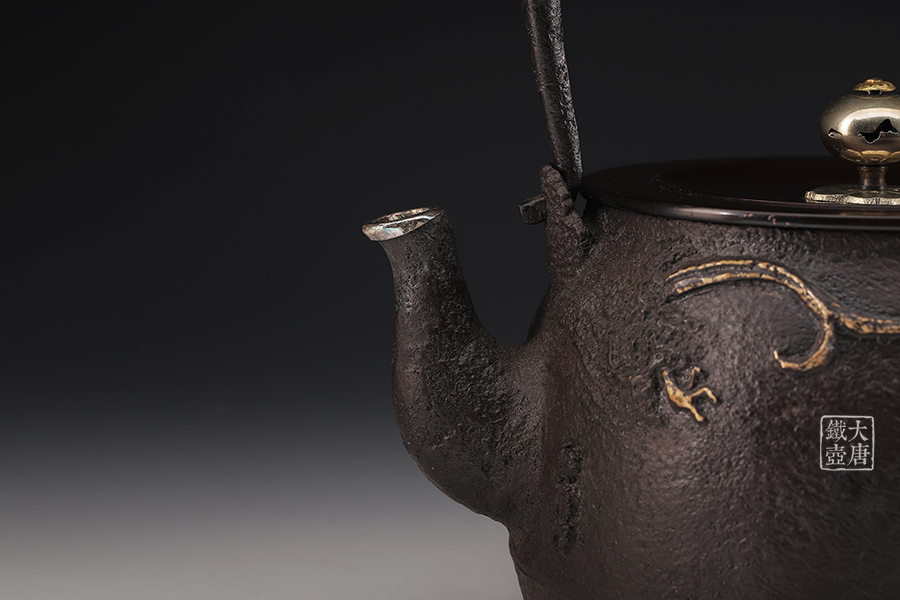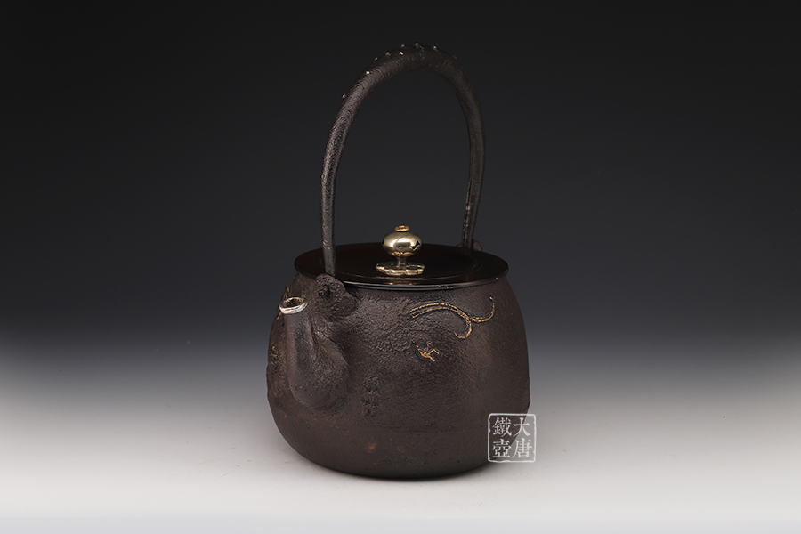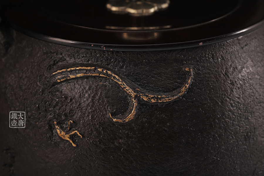 荒井工房的鐵瓶除了在鑄造工藝上有嚴格的規(guī)范和體系,在鐵瓶裝飾技術(shù)上也頗有建樹。除了傳統(tǒng)的印刻技術(shù)外,荒井工房還掌握了非常出色的金銀鑲嵌技藝,尤其以大片的鏨刻銀片最為出眾,這在山形當?shù)靥每谥歇殬湟粠谩?/p>