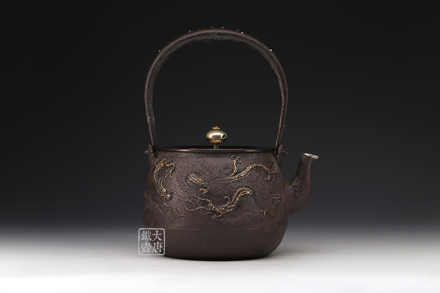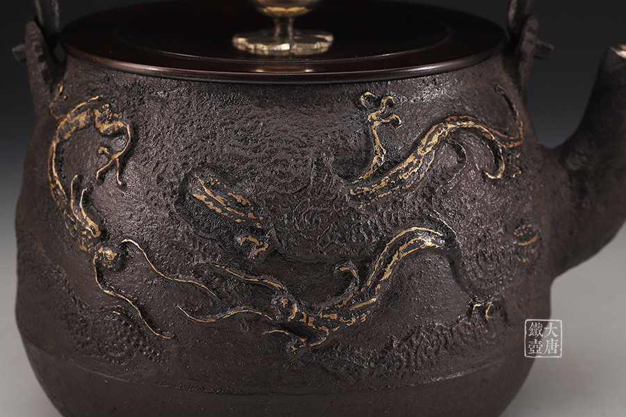 生鐵壺身雨龍紋飾