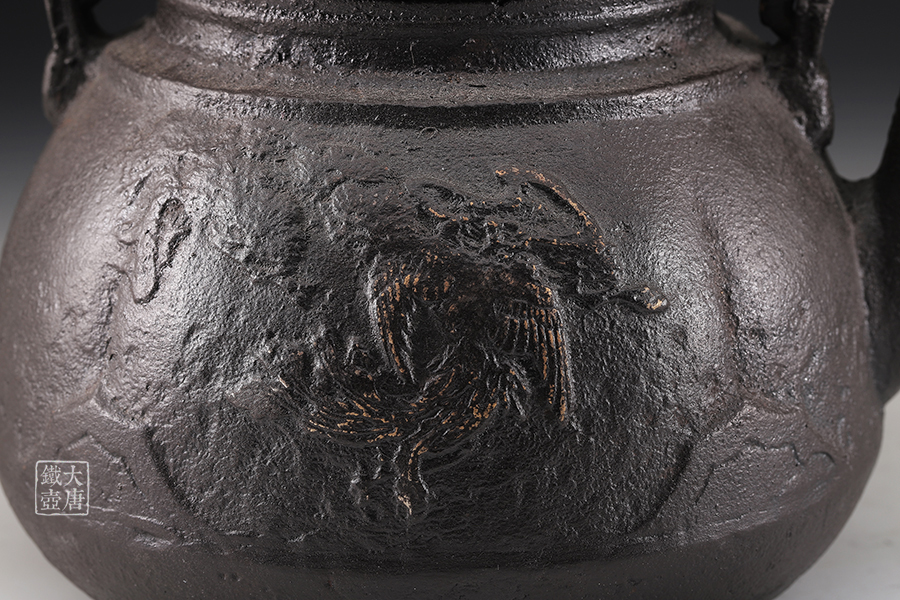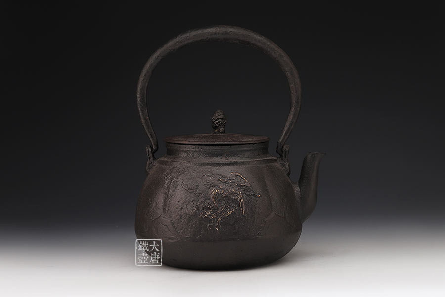 荒井工房的鐵瓶除了在鑄造工藝上有嚴(yán)格的規(guī)范和體系,在鐵瓶裝飾技術(shù)上也頗有建樹。除了傳統(tǒng)的印刻技術(shù)外,荒井工房還掌握了非常出色的金銀鑲嵌技藝,尤其以大片的鏨刻銀片最為出眾,這在山形當(dāng)?shù)靥每谥歇?dú)樹一幟。